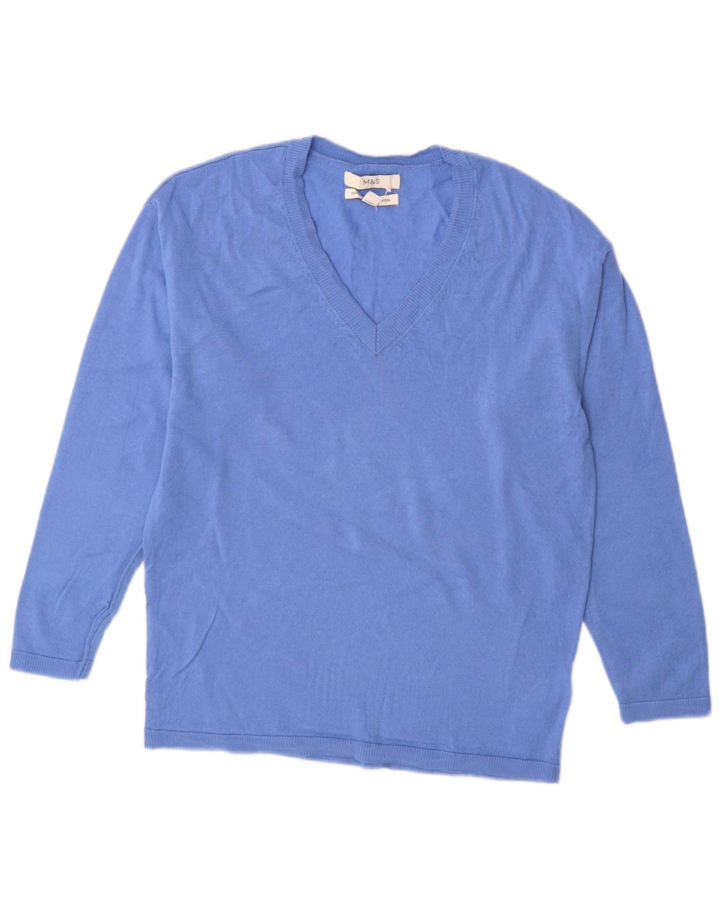 Marks & Spencer Damski sweter z dekoltem w kształcie litery V, UK 6 XS, niebieska wełna Merino