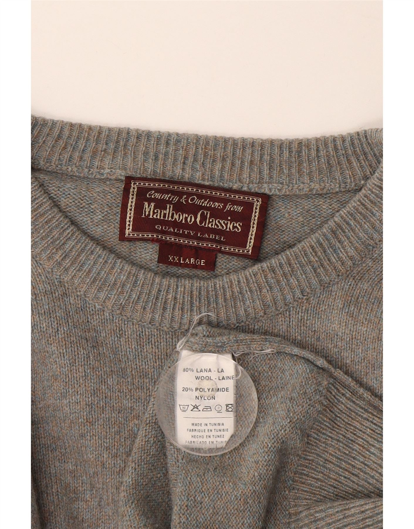 Marlboro Classics Męski sweter z okrągłym dekoltem 2XL Szara wełna