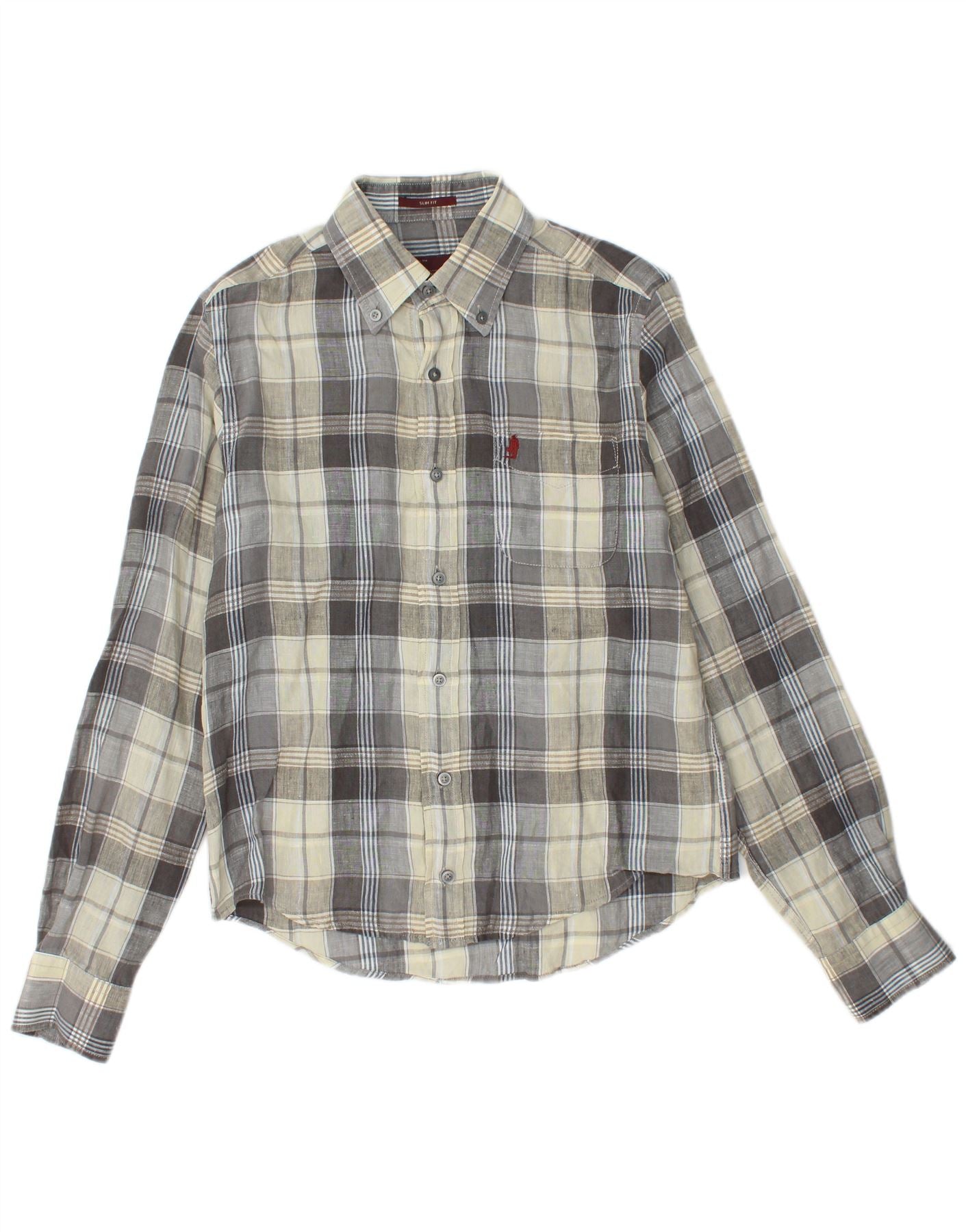 MARLBORO CLASSICS Męska koszula slim fit w małą wielobarwną lnianą kratę