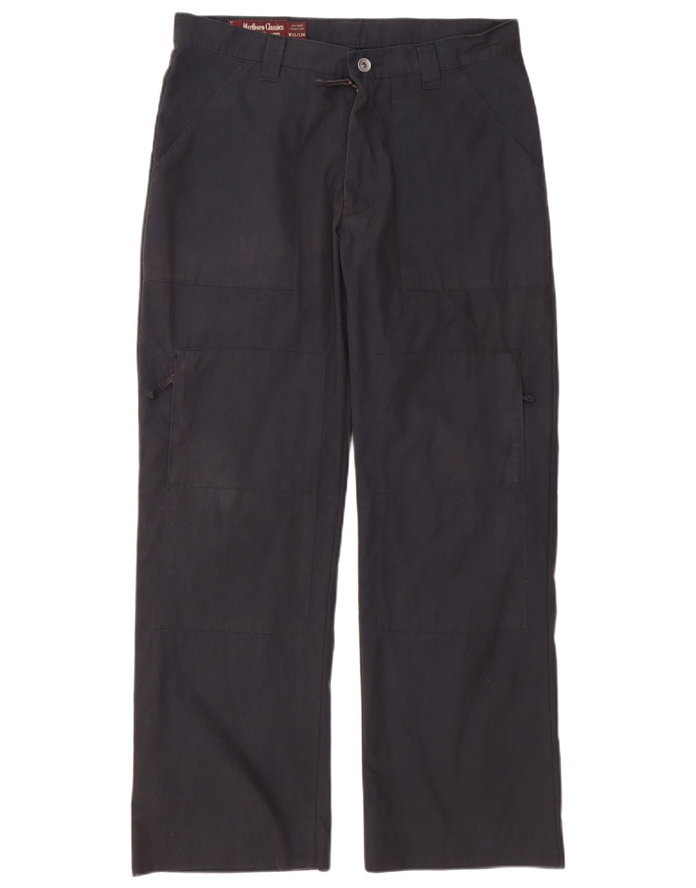 MARLBORO CLASSICS Mens Straight Cargo Trousers W33 L29 Black Cotton