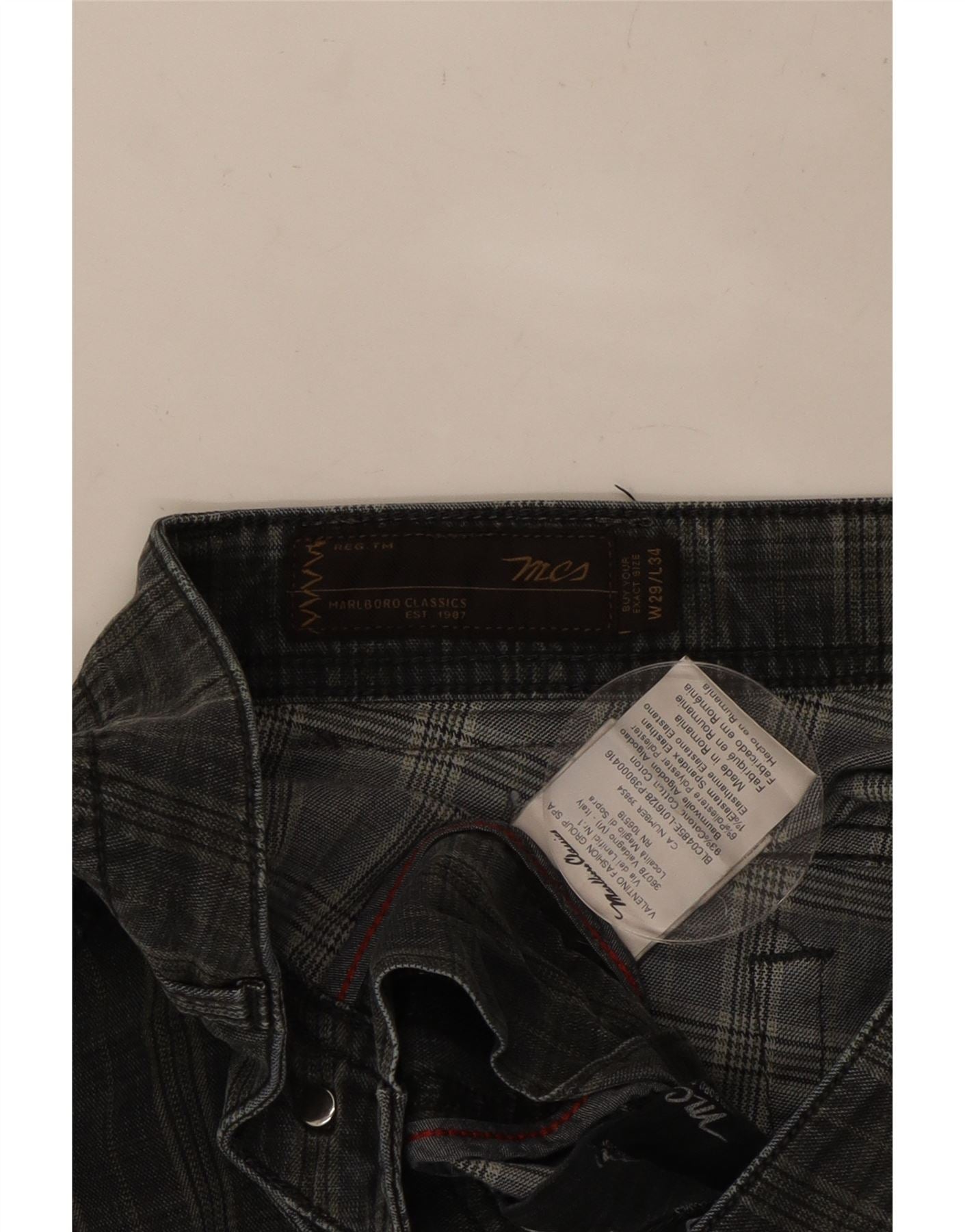 MARLBORO CLASSICS Męskie proste spodnie codzienne W29 L29 Czarna bawełniana krata