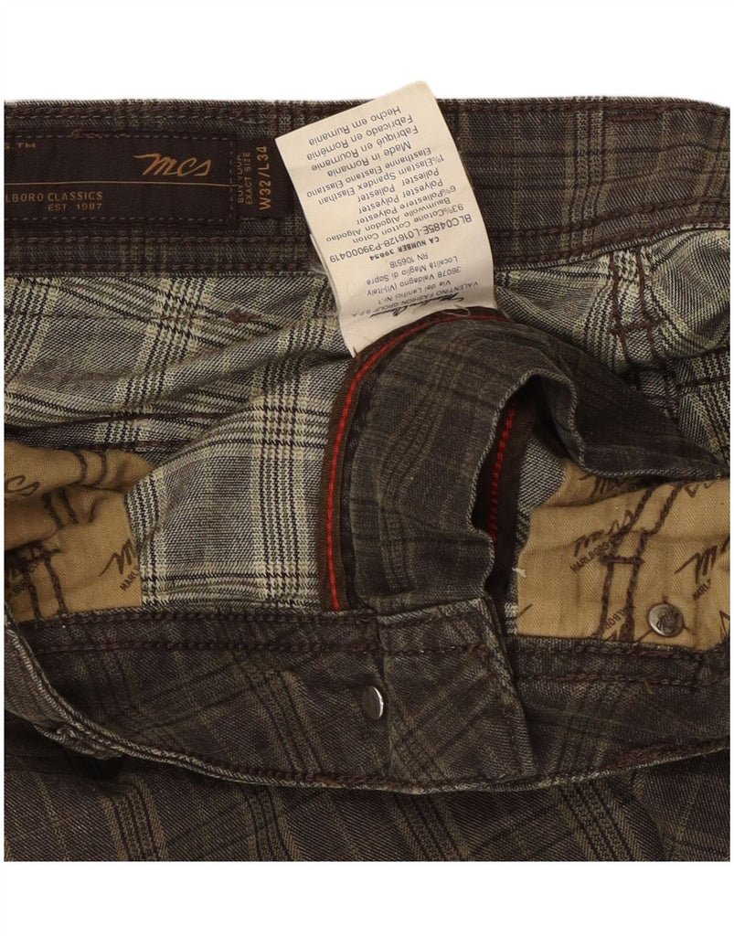 MARLBORO CLASSICS Mens Straight Casual Trousers W32 L34 Grey Check Cotton