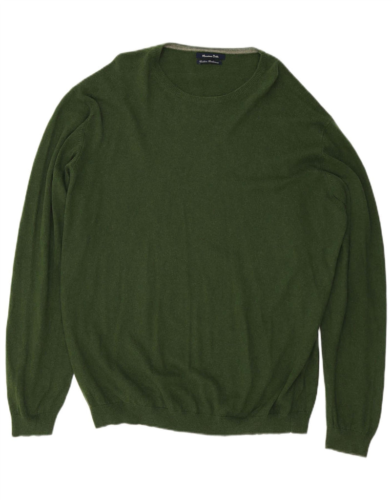 MASSIMO DUTTI Mens Crew Neck Jumper Sweater 2XL Green Cotton