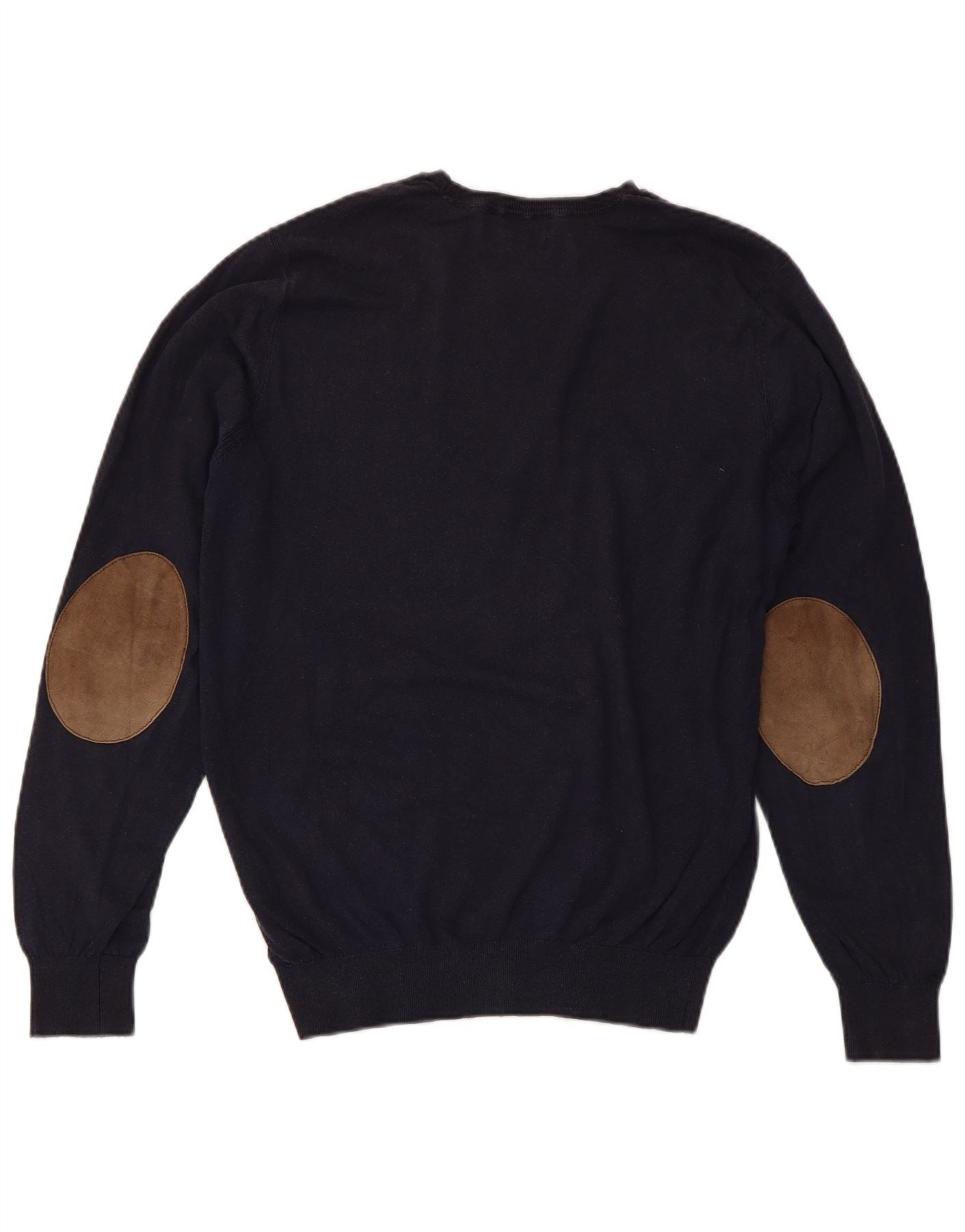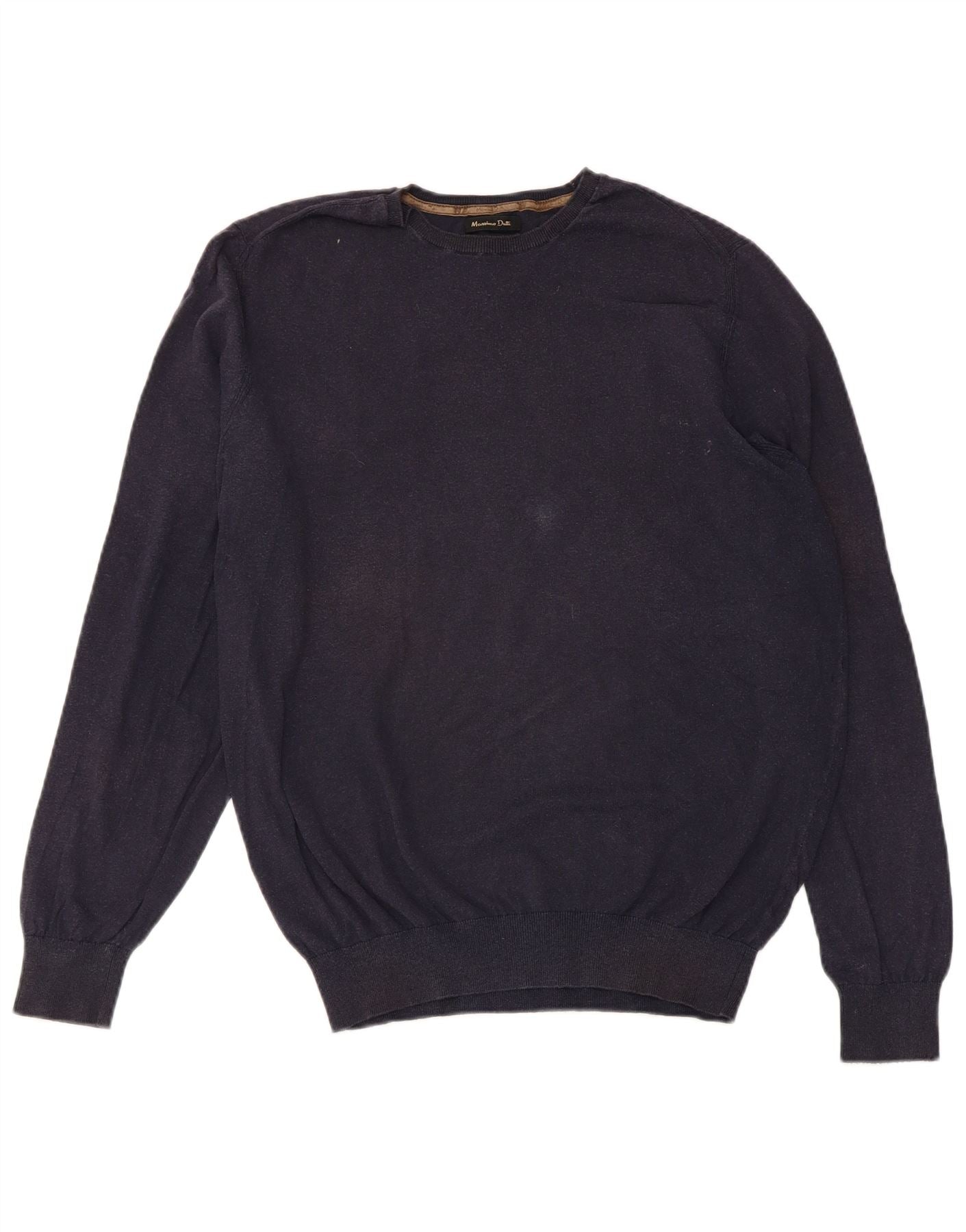 MASSIMO DUTTI Męski sweter z okrągłym dekoltem, średni granatowy, bawełniany