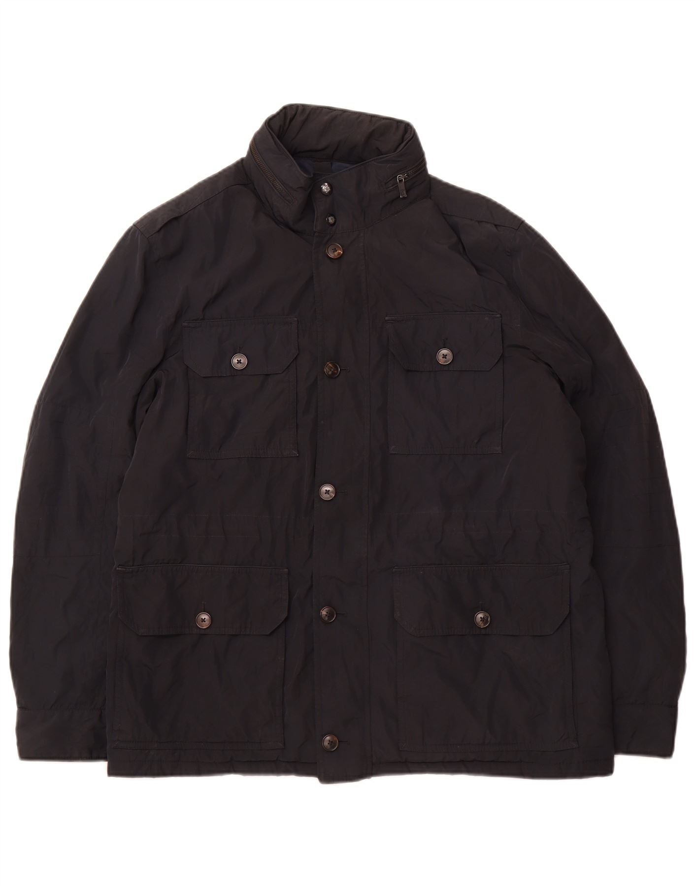 MASSIMO DUTTI Mens Hooded Utility Jacket UK 42 XL Navy Blue