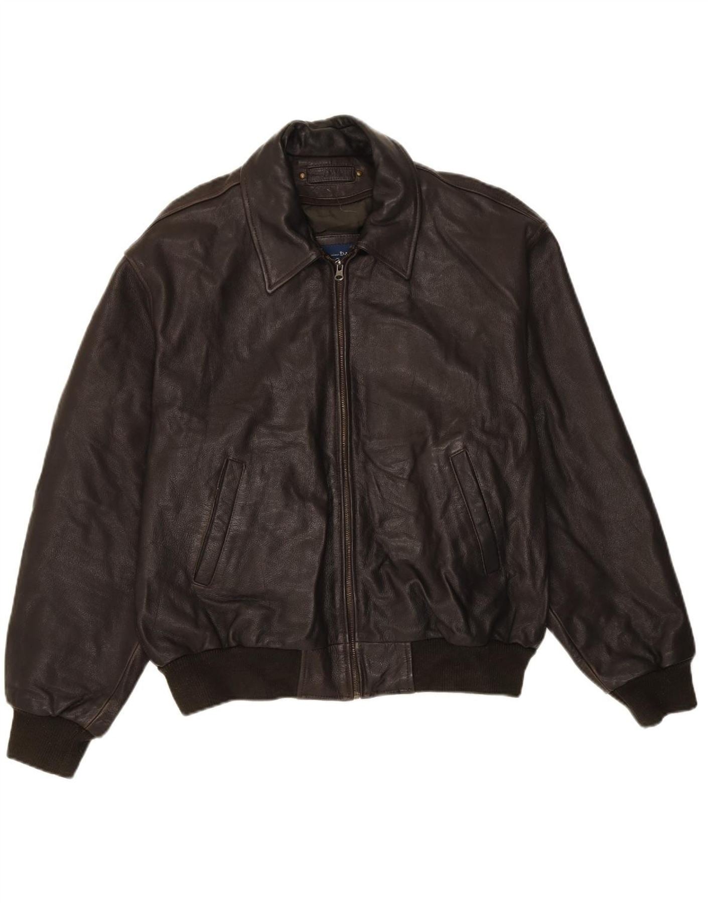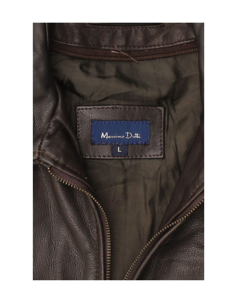 MASSIMO DUTTI Mens Leather Jacket UK 40 Large Brown Leather