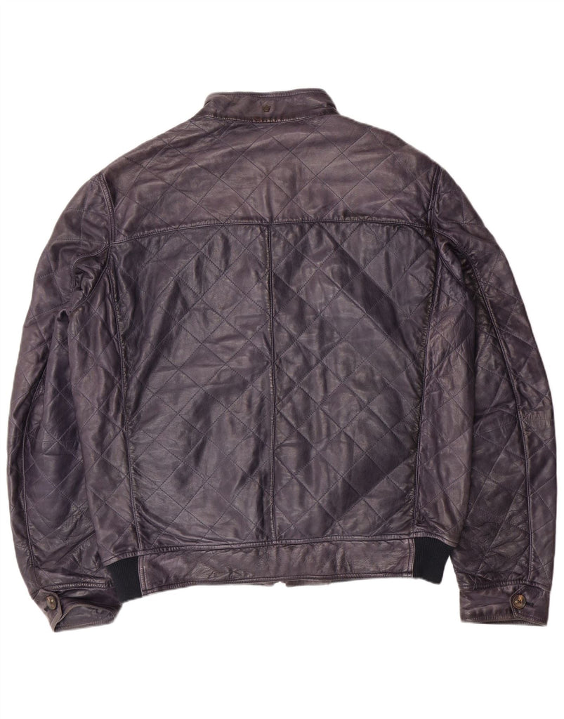 MASSIMO DUTTI Mens Leather Jacket UK 42 XL Navy Blue