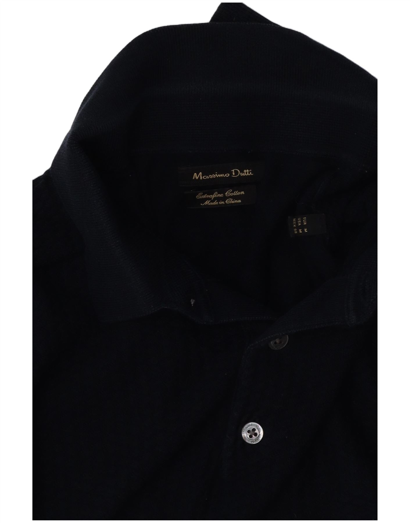 MASSIMO DUTTI Męski sweter polo z dekoltem w serek, średni granatowy, bawełniany