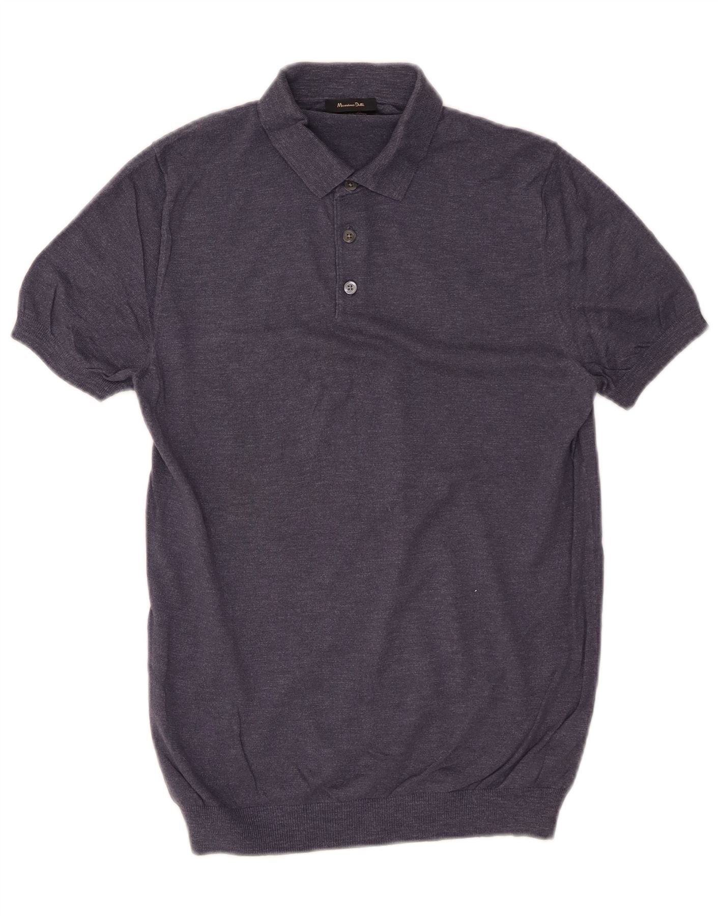 MASSIMO DUTTI Męski sweter polo z krótkim rękawem, mały, granatowy