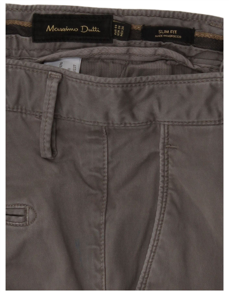 MASSIMO DUTTI Mens Slim Fit Chino Trousers EU 44 Large W34 L32 Grey Cotton