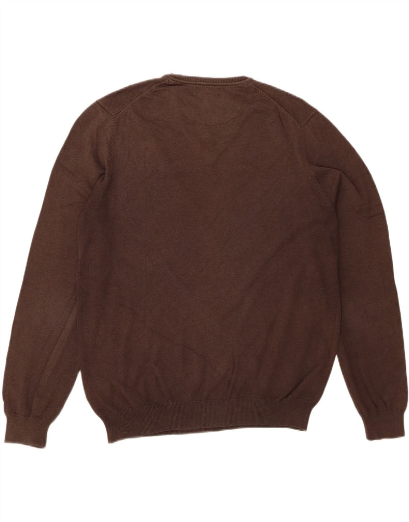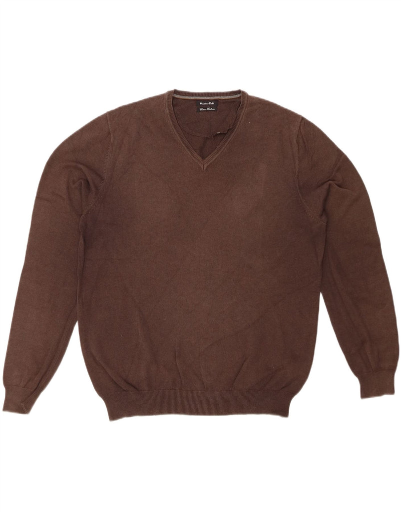 MASSIMO DUTTI Mens V-Neck Jumper Sweater Large Brown Cotton