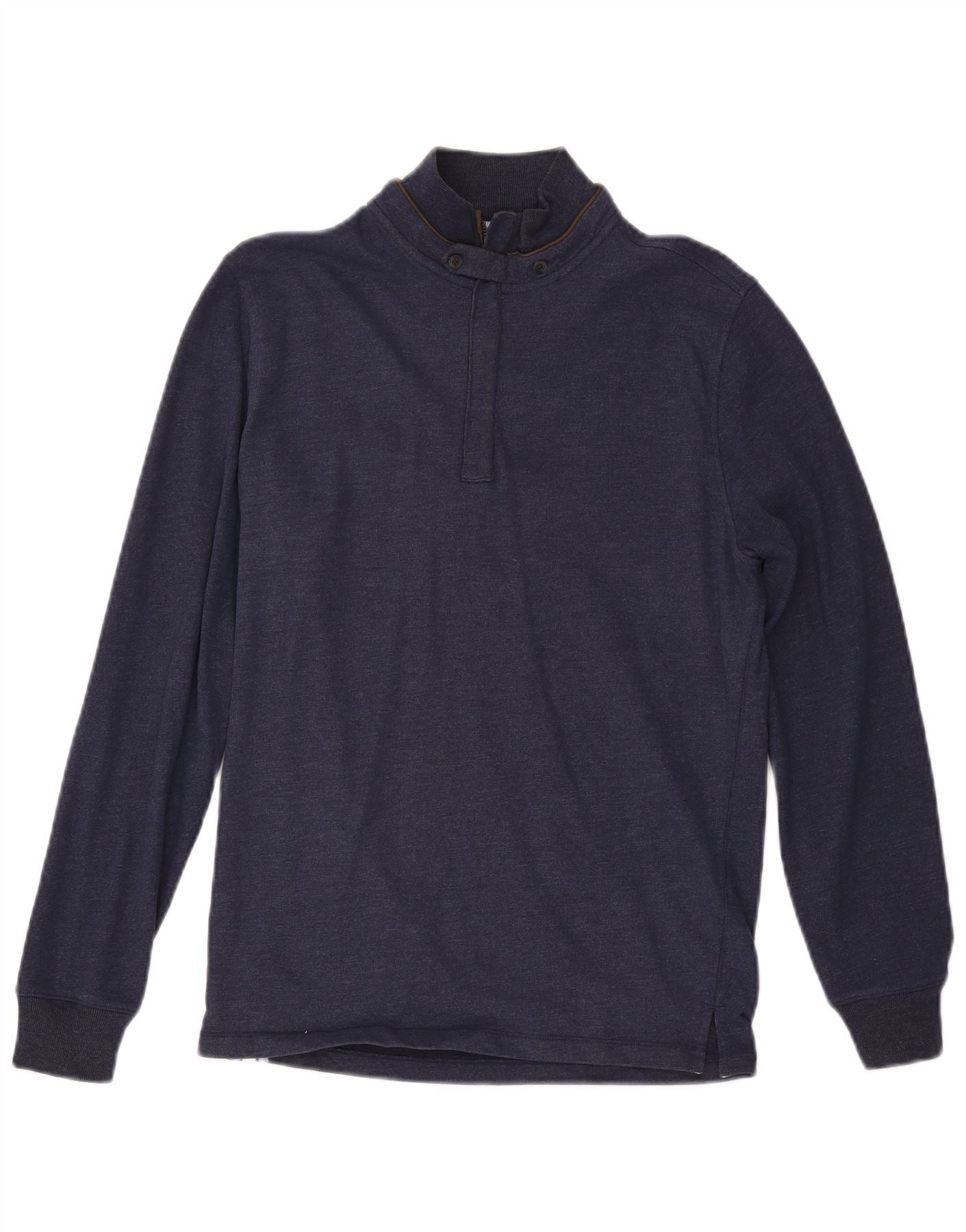 MASSIMO DUTTI Męski top zapinany na zamek, z długim rękawem, średni, granatowy, bawełniany