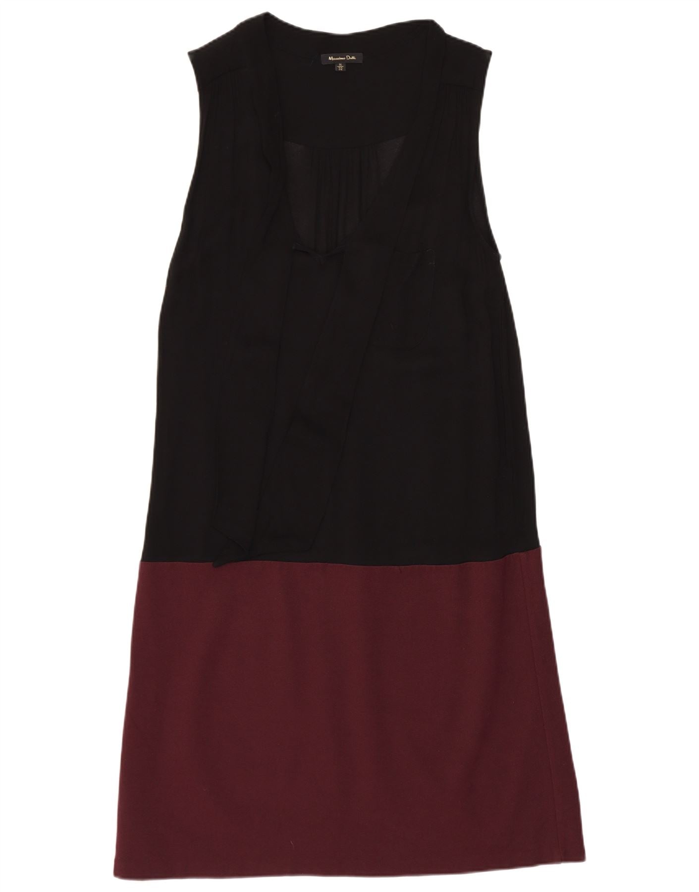 Damska sukienka o linii A MASSIMO DUTTI UK 12, średnia czarna, z blokami kolorów