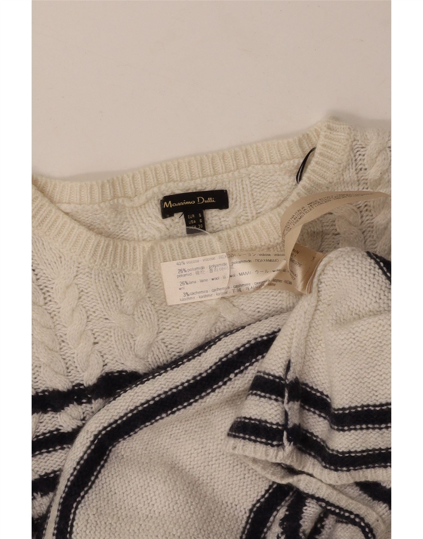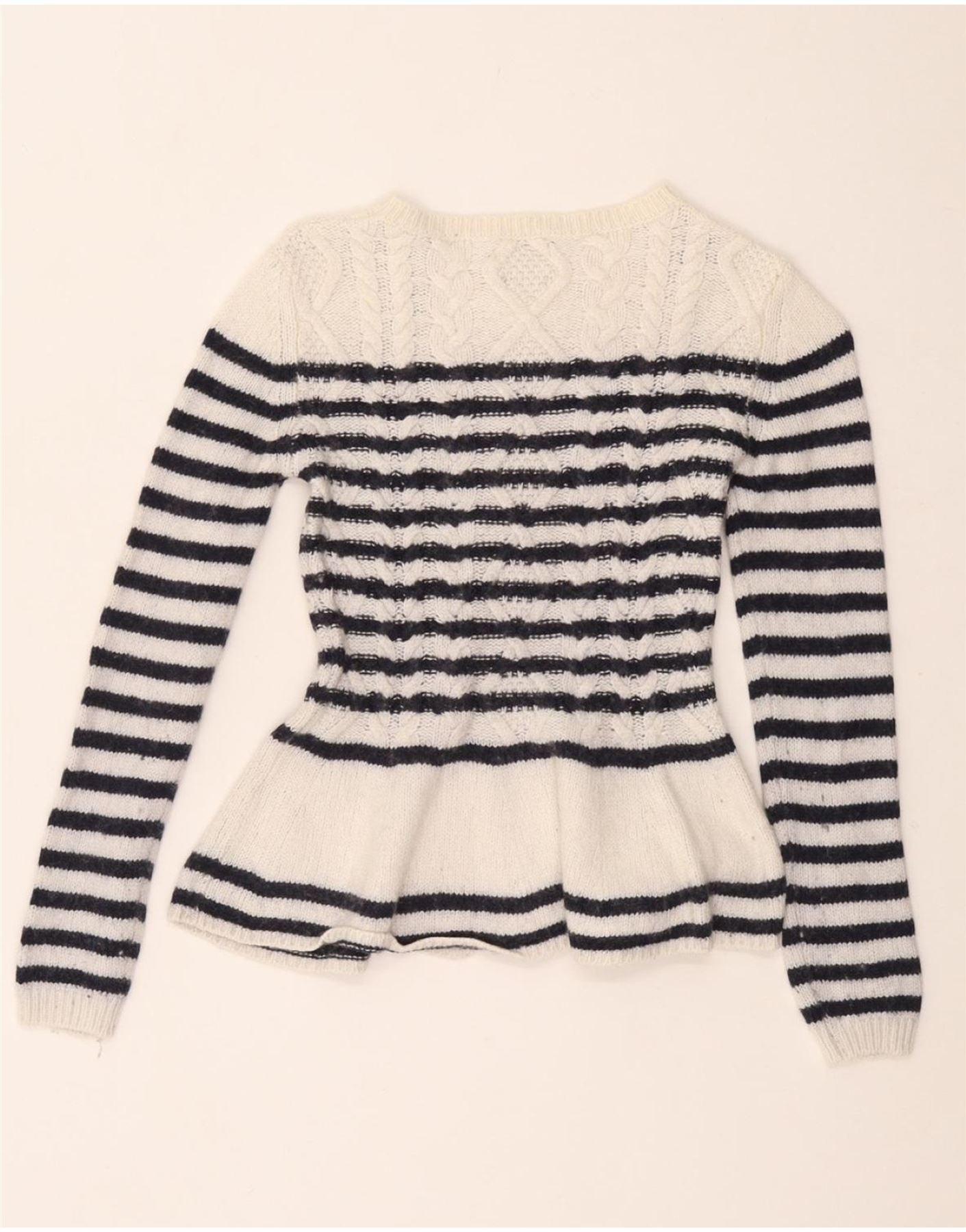 MASSIMO DUTTI Damski dopasowany sweter z dekoltem w łódkę UK 8 Small White
