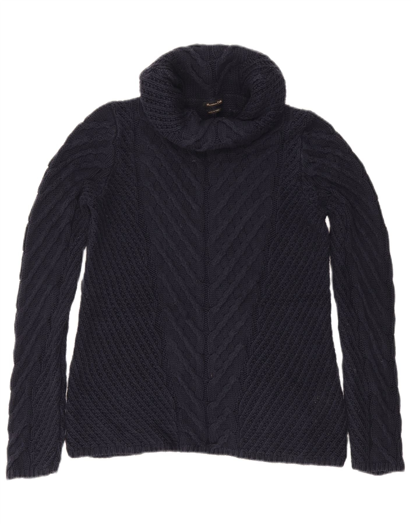 MASSIMO DUTTI Womens Roll Neck Jumper Sweater UK 10 Small Navy Blue Cotton