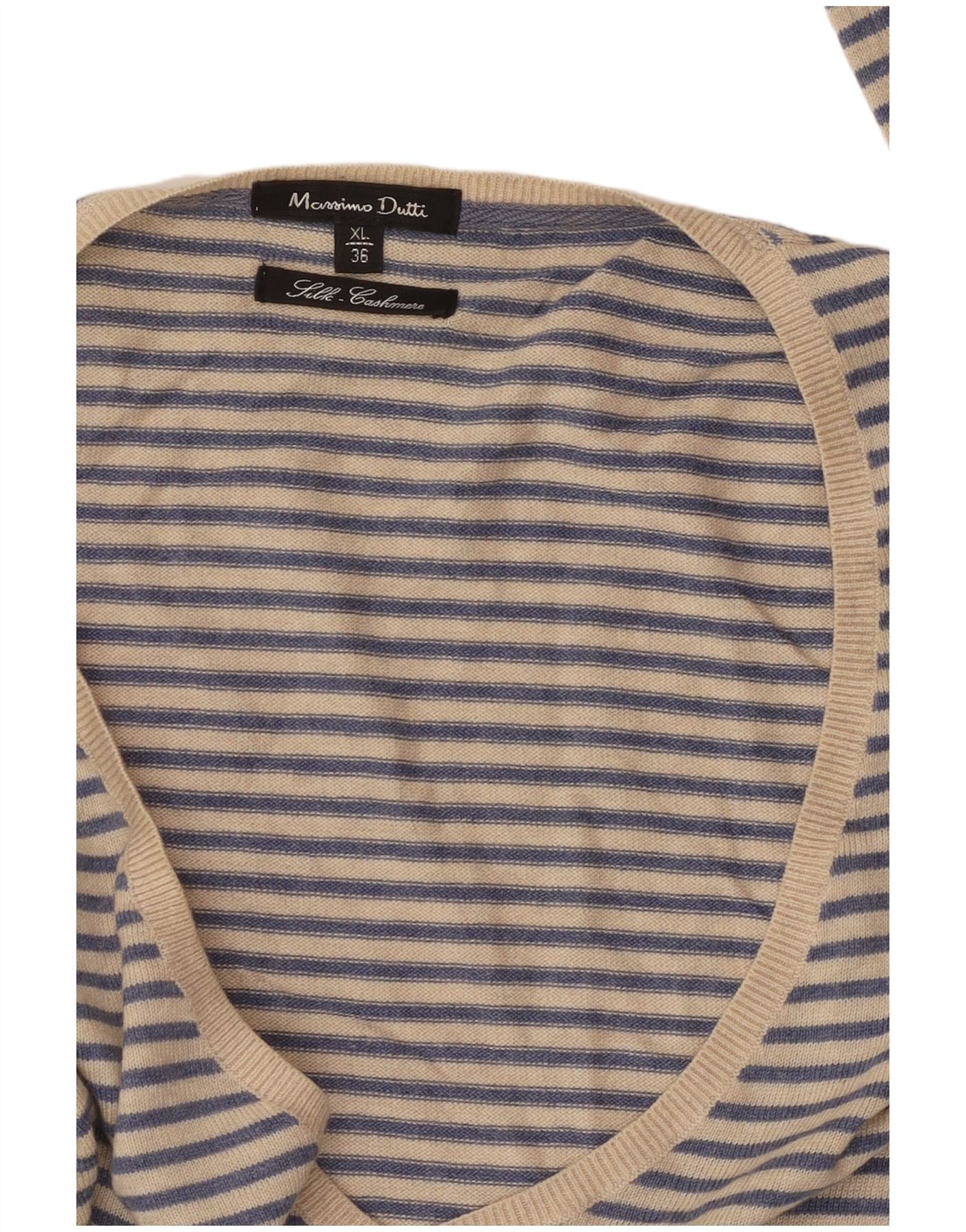 Home > Massimo Dutti > Damskie > Sweter damski MASSIMO DUTTI z dekoltem w kształcie litery V, brytyjski 18 XL, kaszmirowy w niebieskie paski