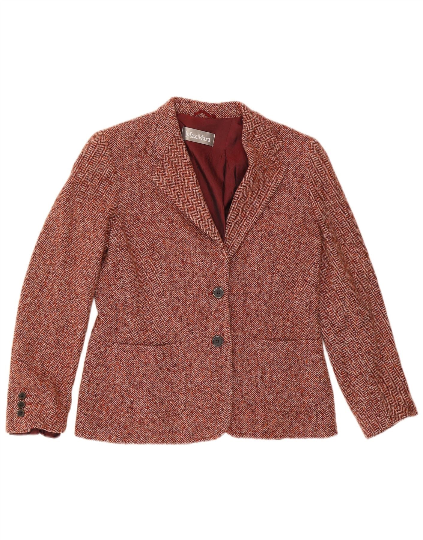 MAX MARA Womens 2 Button Blazer Jacket UK 14 Medium Red Herringbone Wool