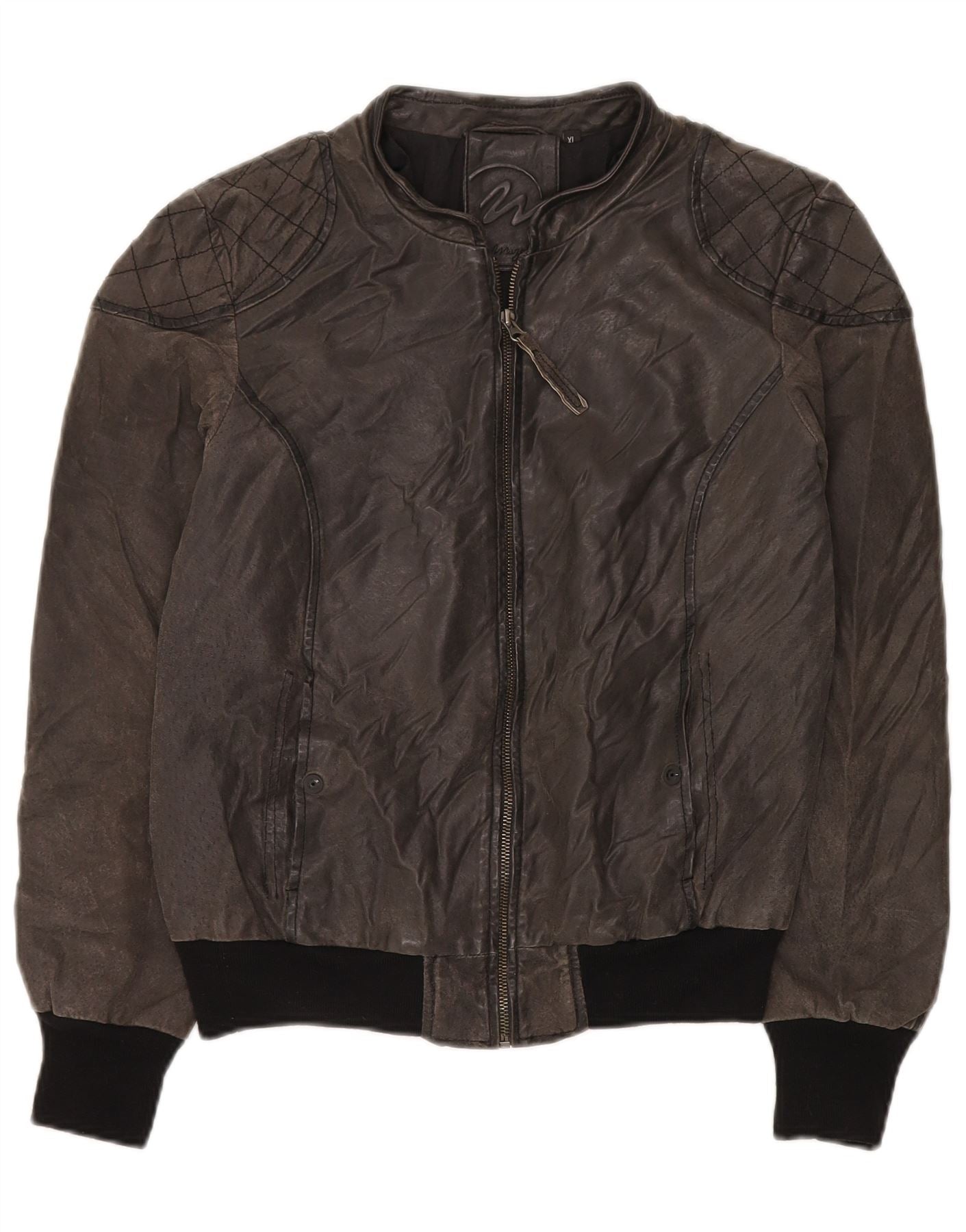 Męska zamszowa kurtka bomber MAZE UK 38, średnioszara, skórzana