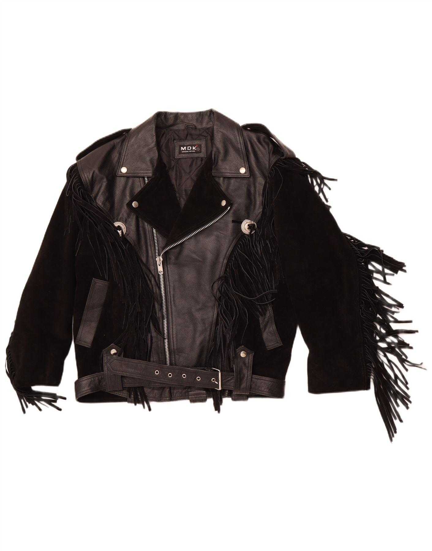 Damska skórzana kurtka motocyklowa MDK o luźnym kroju, UK 14, średnia czarna
