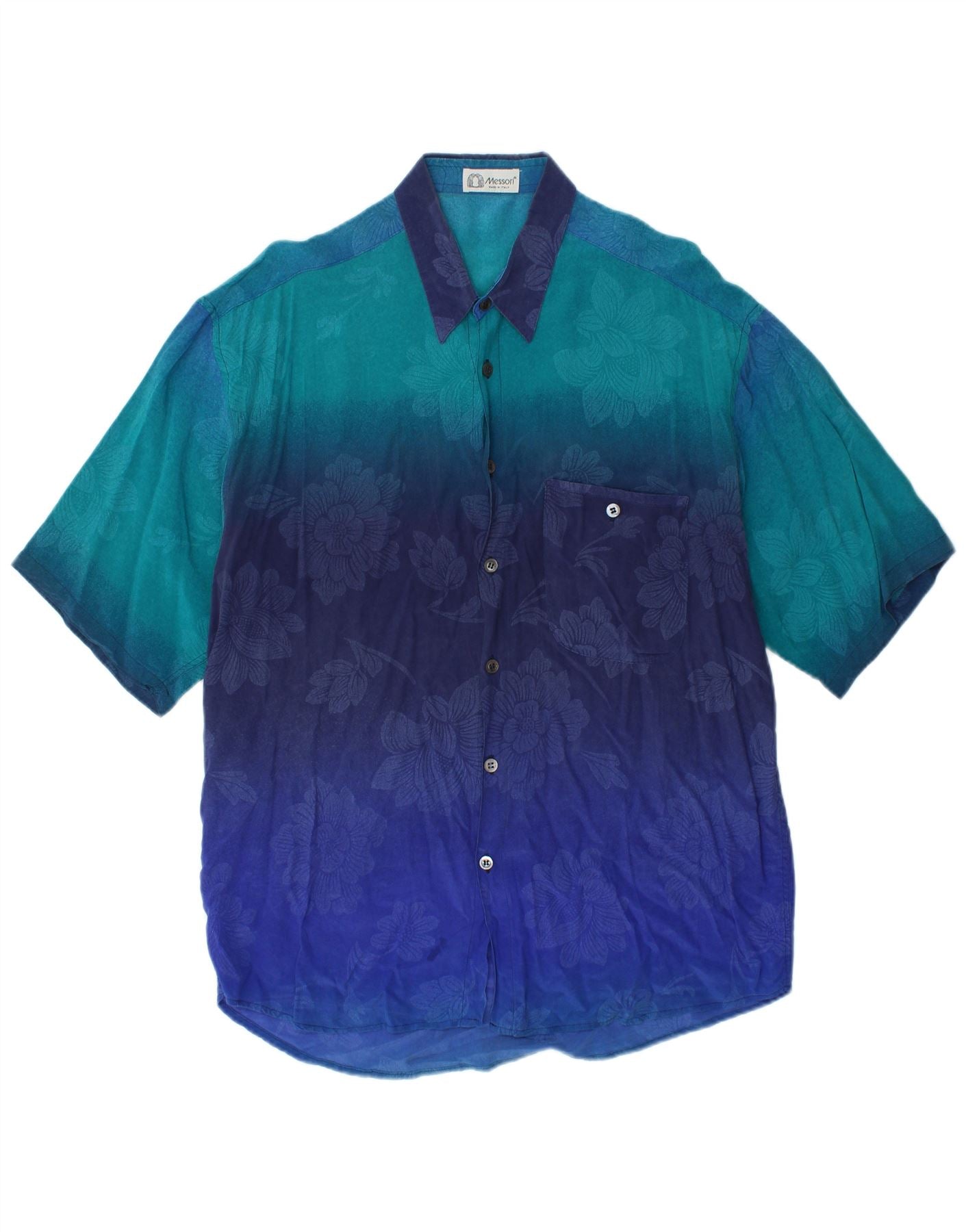 Koszula męska z krótkim rękawem MESSORI, duża niebieska w kwiaty