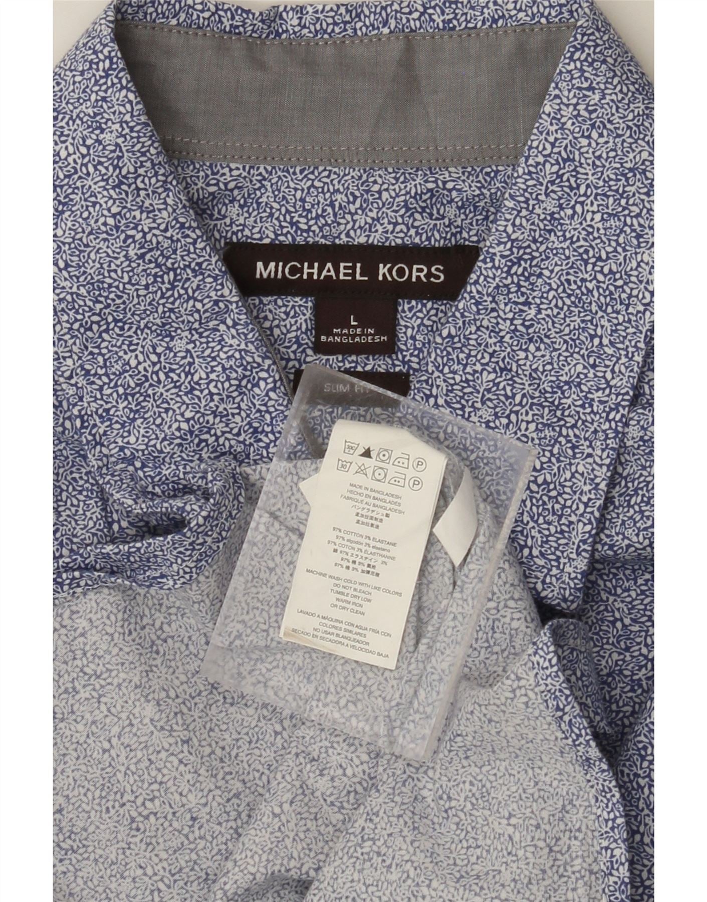 MICHAEL KORS Męska koszula slim fit, duża, niebieska, bawełniana w kwiaty