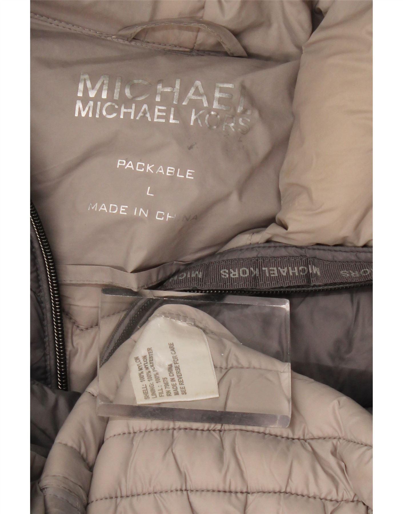 MICHAEL KORS Damski ocieplany płaszcz z kapturem UK 16, duży, szary nylon
