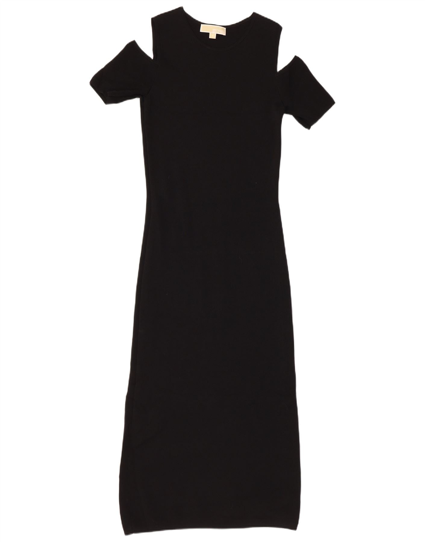 MICHAEL KORS Damska sukienka maxi z odkrytymi ramionami UK 12 Średnia czarna wiskoza