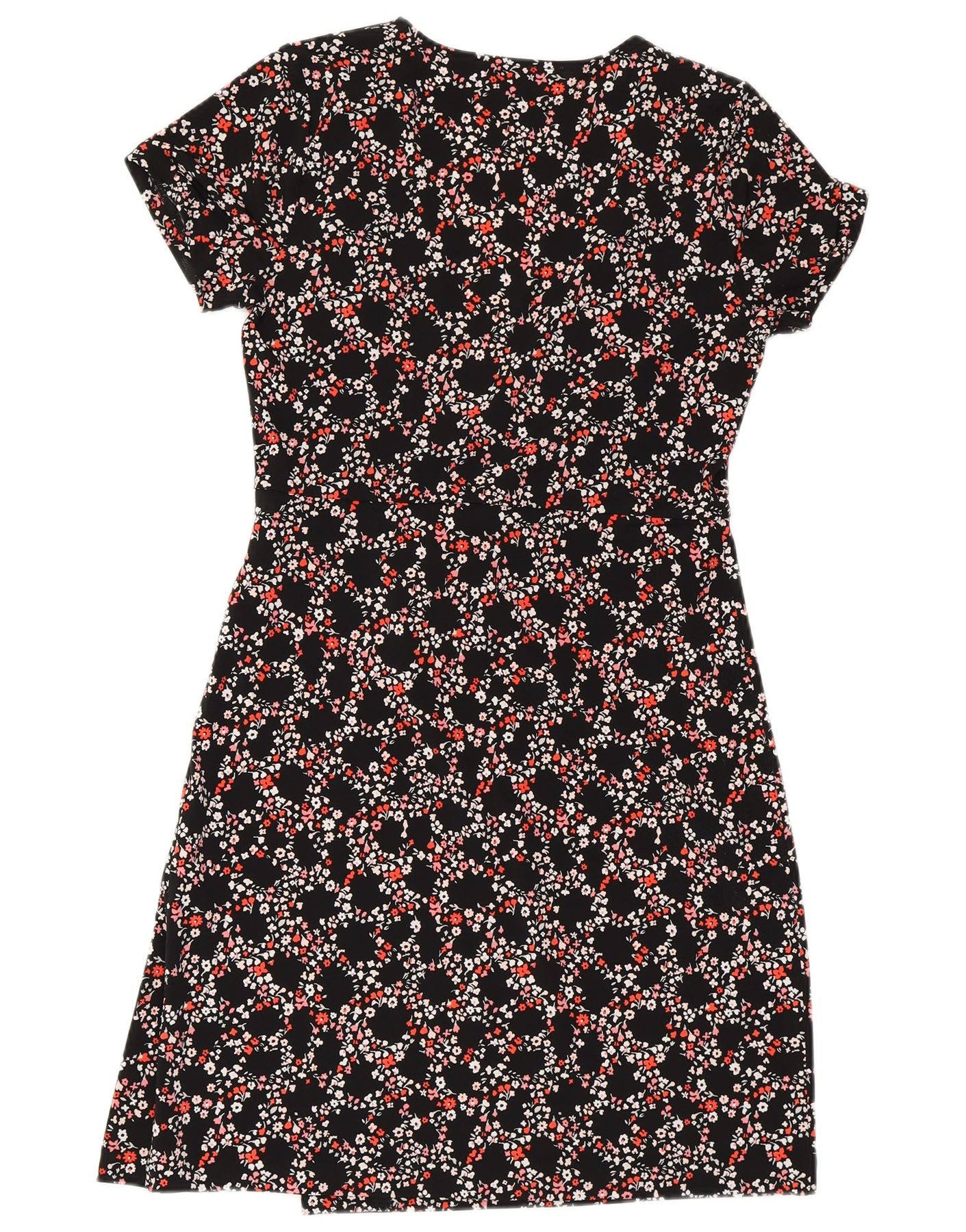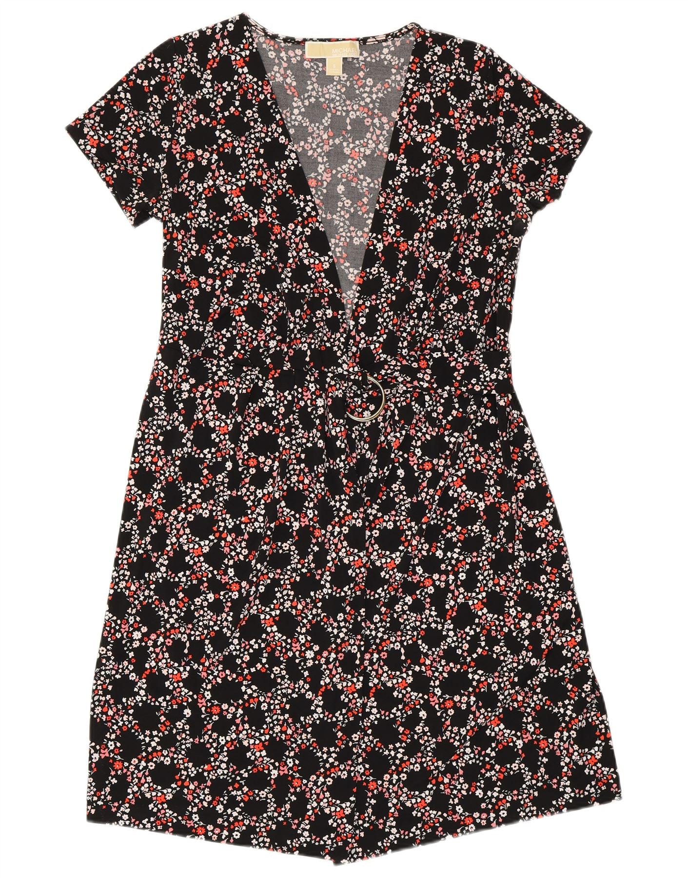 MICHAEL KORS Damska sukienka kopertowa UK 10, mała, czarna, z poliestru w kwiaty