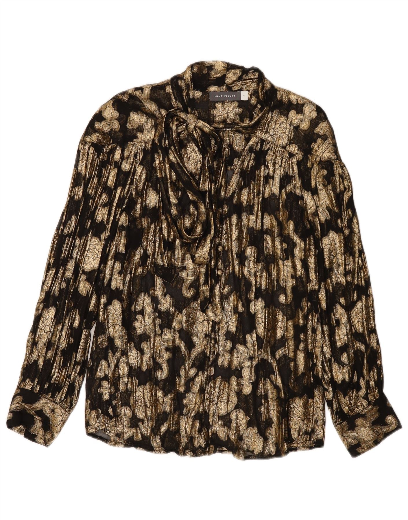 Damska bluzka koszulowa MINT VELVET wiązana z przodu UK 14 Średnio-złota wiskoza w kwiaty