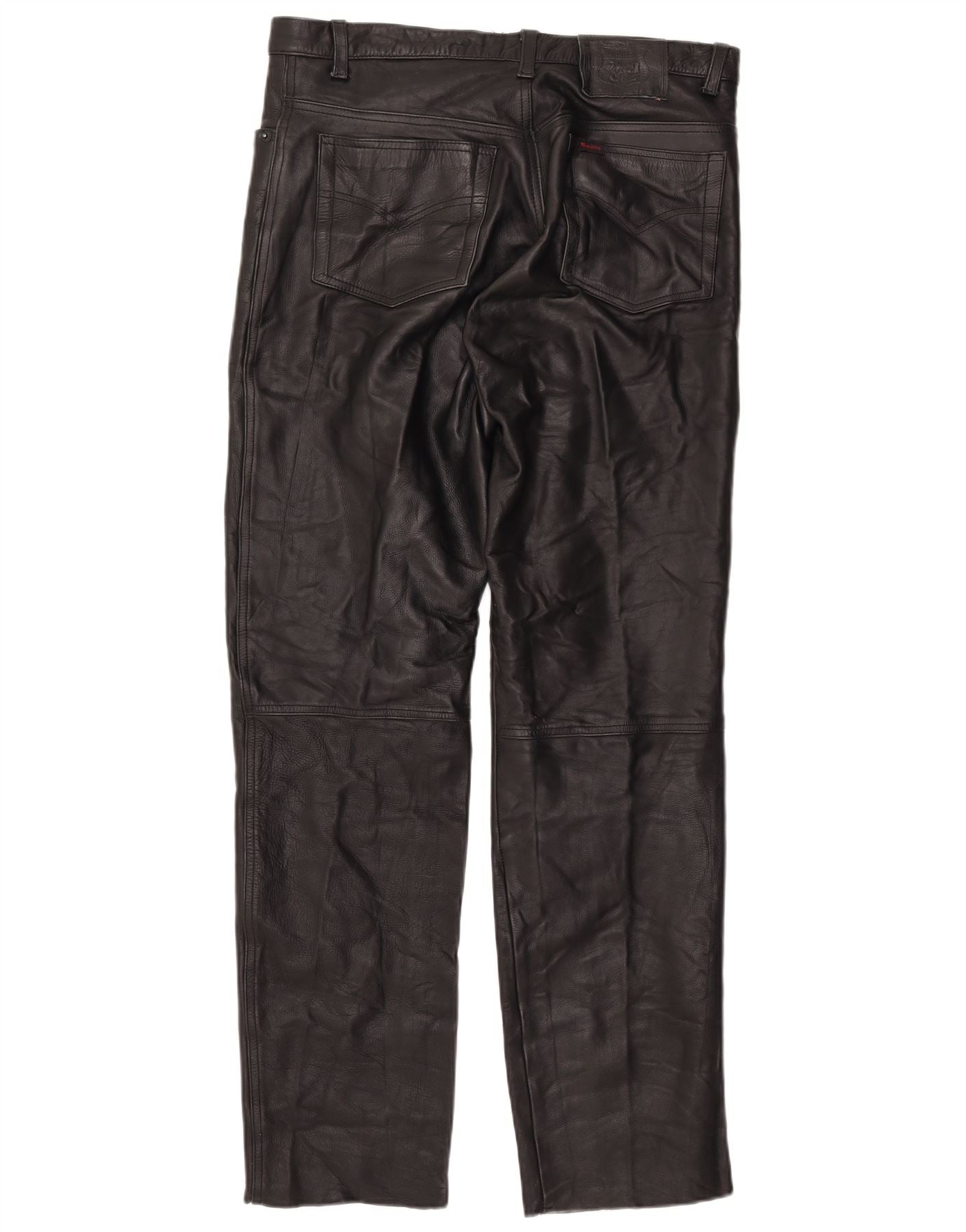 MODEKA Męskie proste skórzane spodnie W37 L33 Czarna skóra