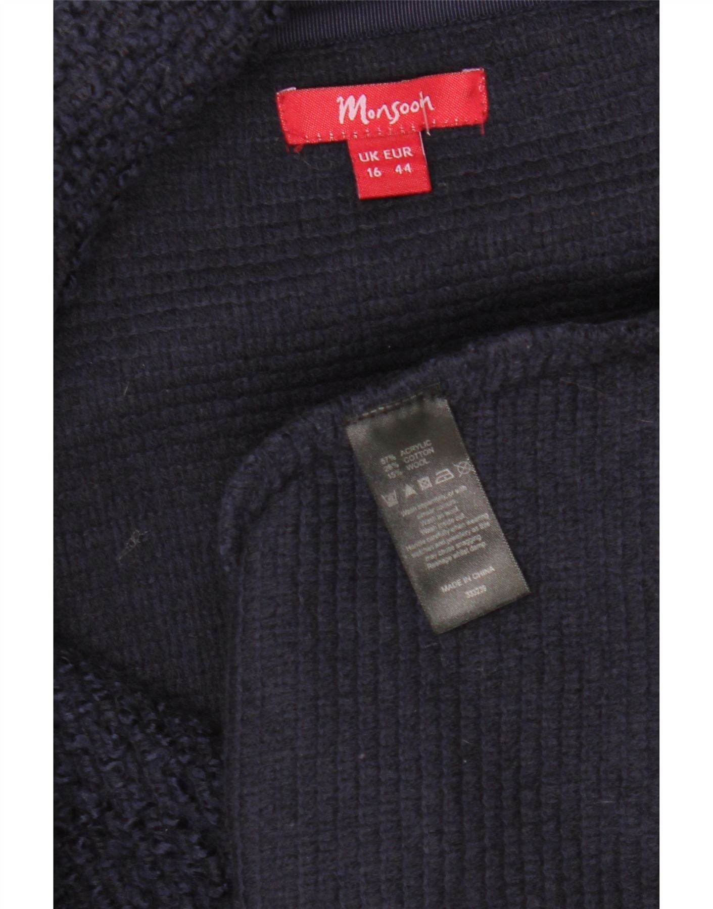 MONSOON Damska marynarka zapinana na 3 guziki UK 16, duża, granatowa, akrylowa