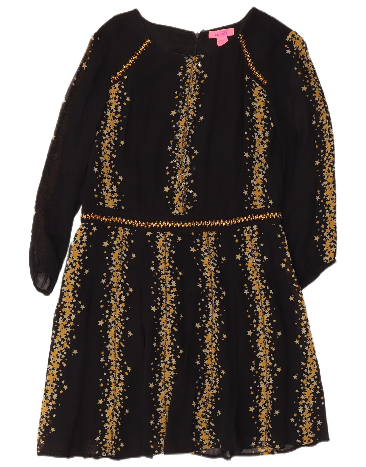 MONSOON Damska sukienka o linii A z abstrakcyjnym wzorem, rękawem 3/4 UK 12, średnia czerń