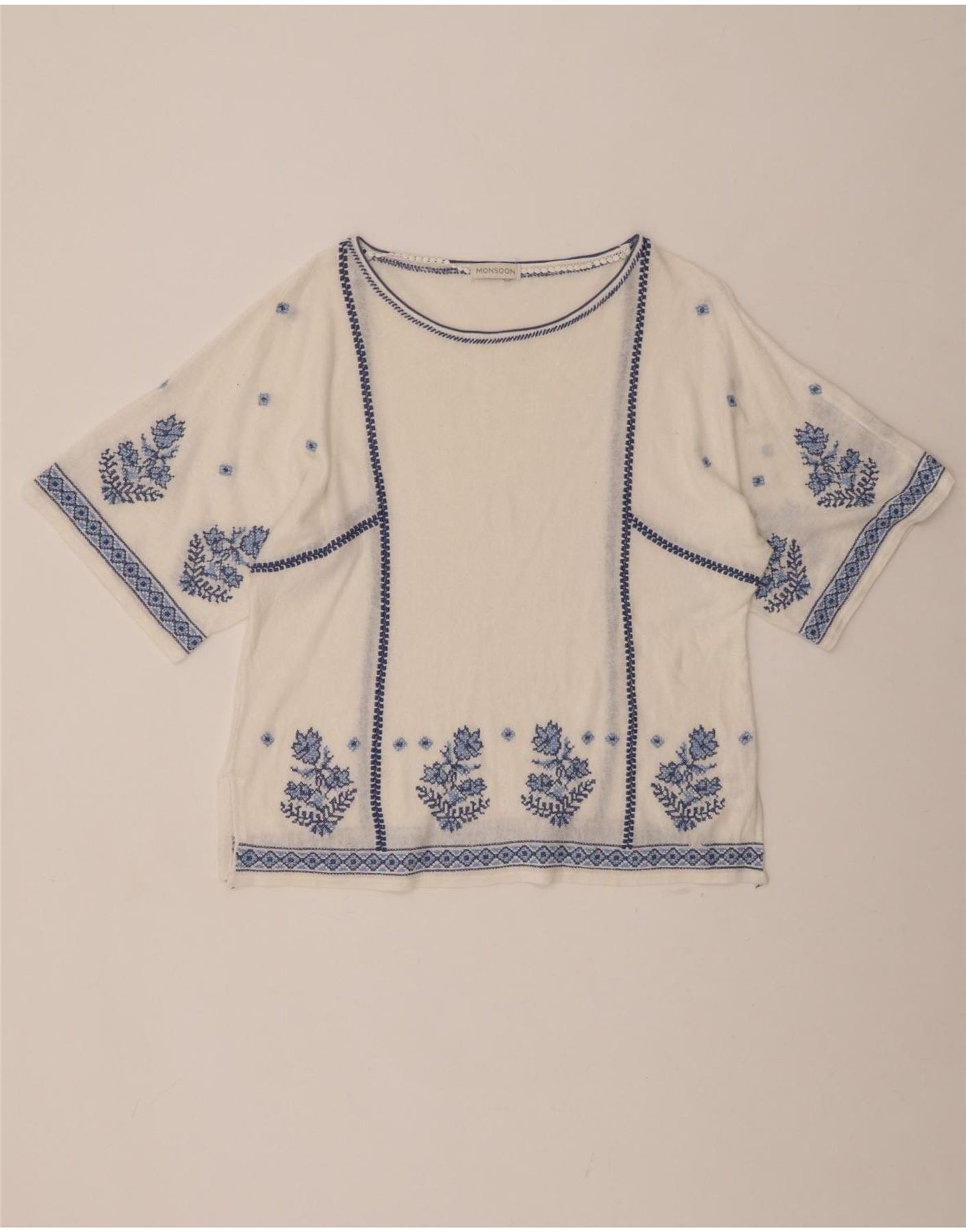 Damska bluzka MONSOON UK 16, duża, z lnu w kwiaty w kolorze złamanej bieli