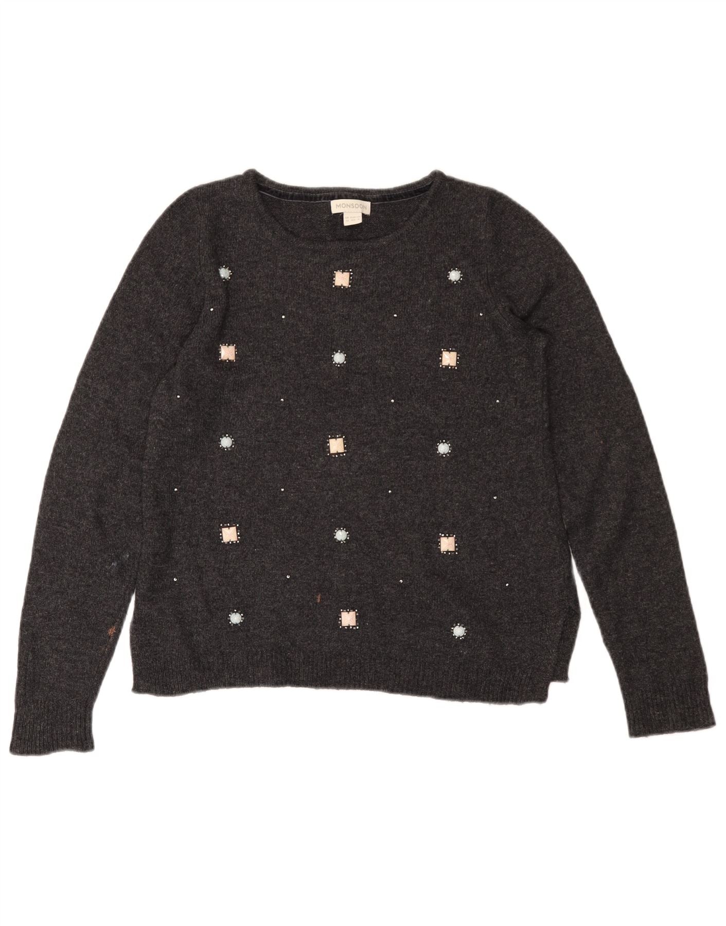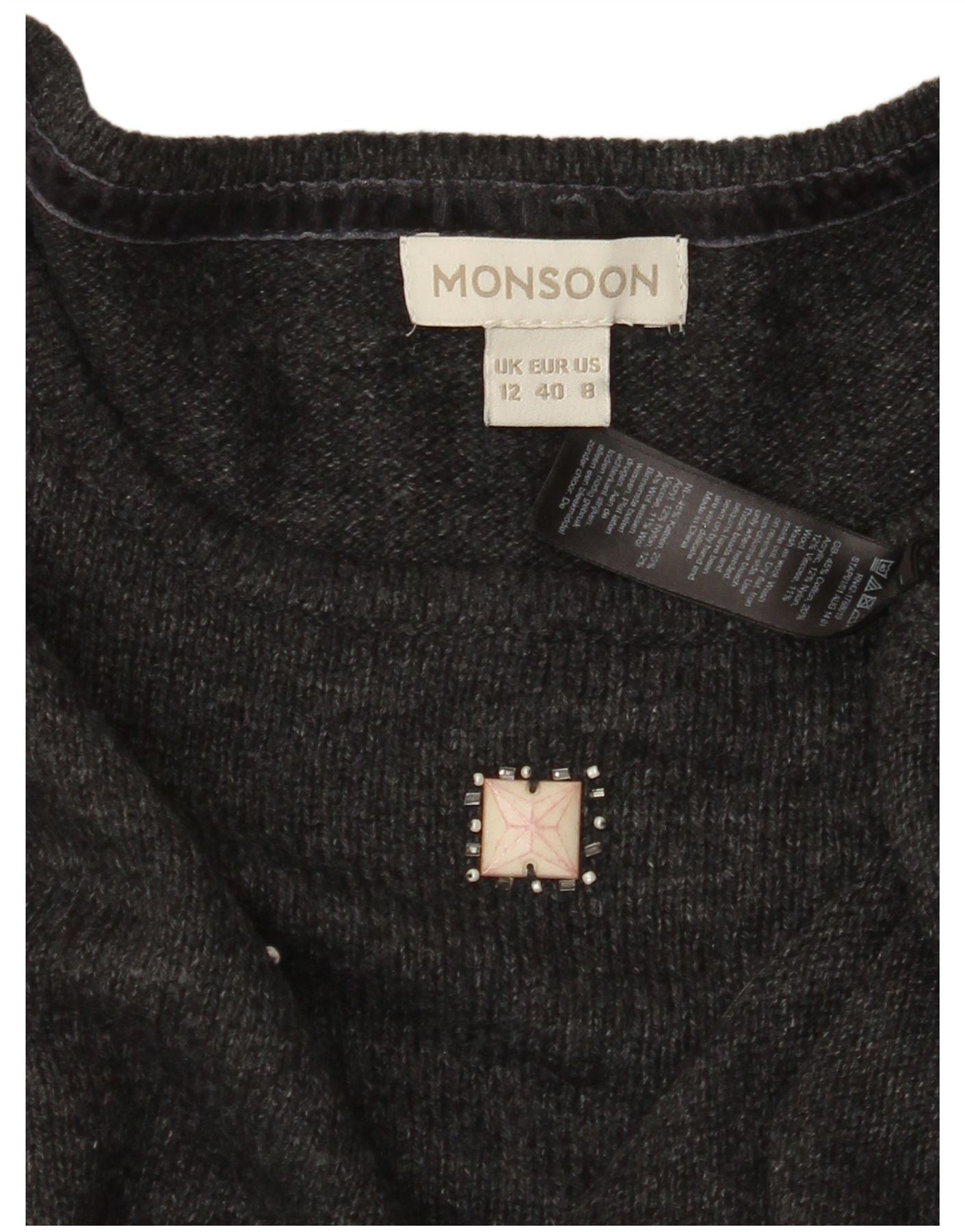 Damski sweter MONSOON z dekoltem w łódkę UK 12, średnioszary, bawełniany