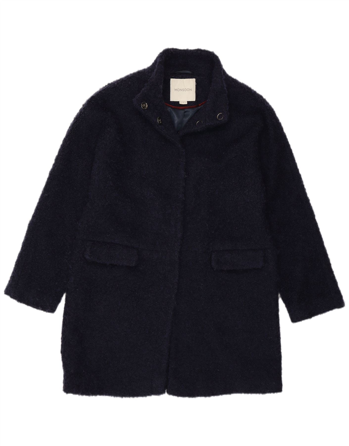 - Opis sztucznej inteligencji: Ten damski płaszcz Monsoon jest wykonany z bogatej granatowej mieszanki akrylowej o charakterystycznej fakturze boucle. Ma kołnierzykowy dekolt i długie rękawy, oferując klasyczną zimową sylwetkę. Regularny krój zapewnia wygodę noszenia. Ukryte zatrzaski zapewniają elegancki przód. Praktyczne kieszenie są zintegrowane, a płaszcz jest w całości wyposażony w podszewkę zapewniającą ciepło. Tonalne guziki dodają subtelnego akcentu.