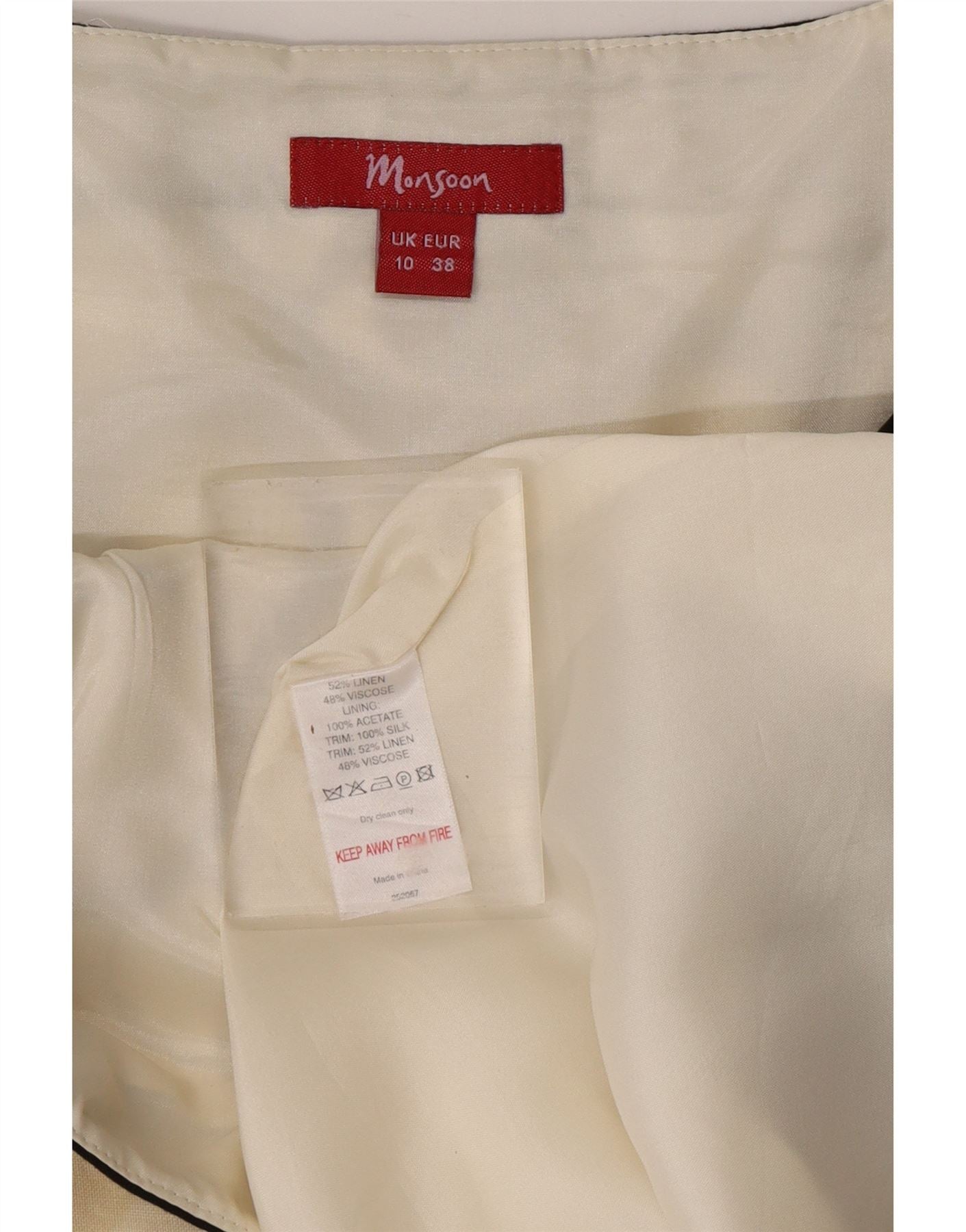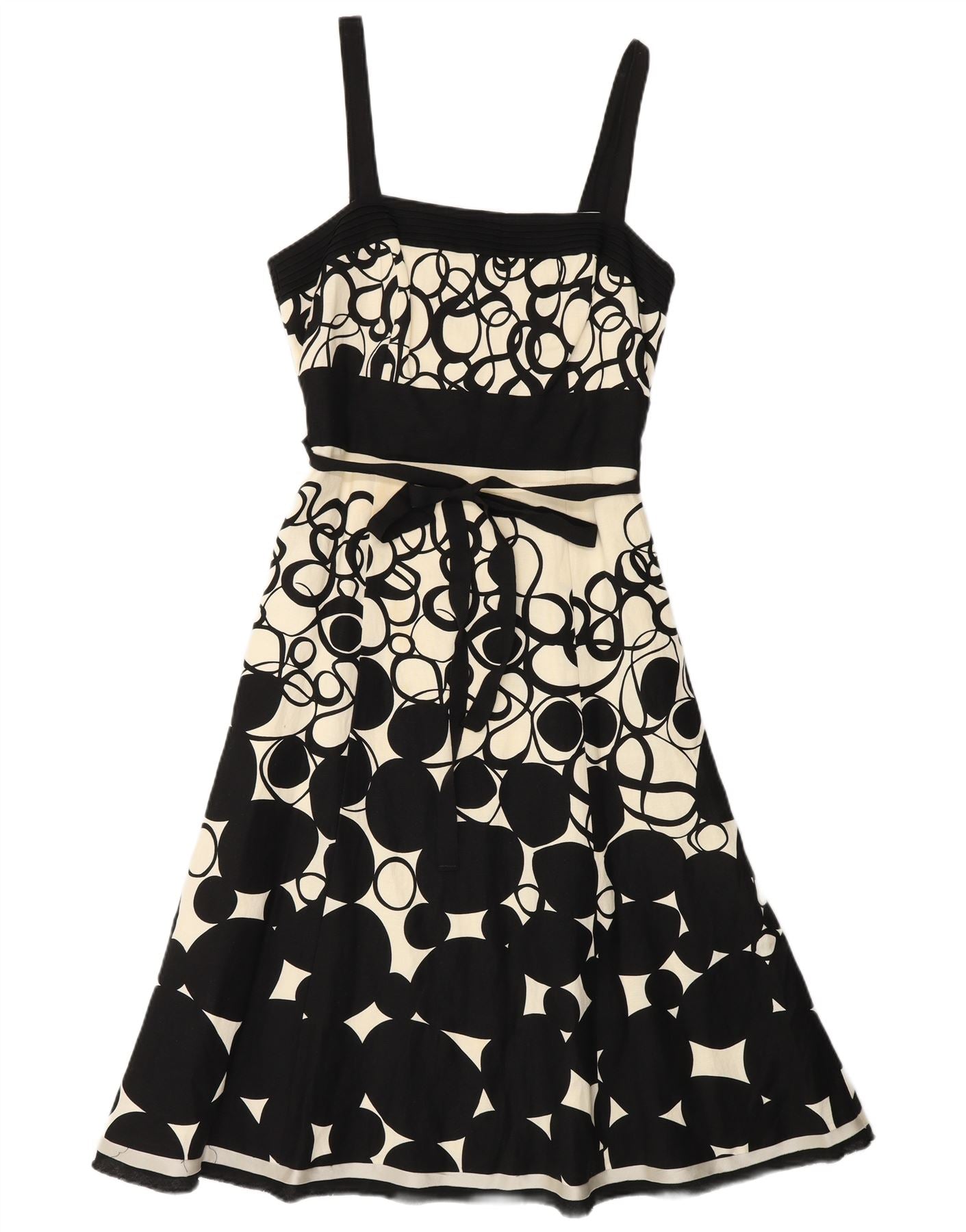 MONSOON Damska sukienka o linii A bez rękawów UK 10 Mała czarna, geometryczna lniana