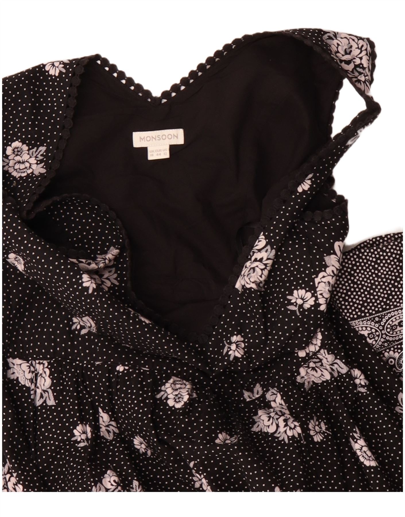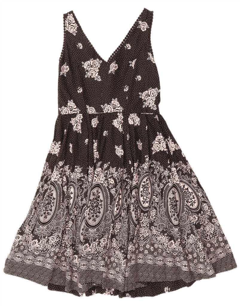 MONSOON Womens Sleeveless A-Line Dress UK 16 Large Black Paisley Cotton