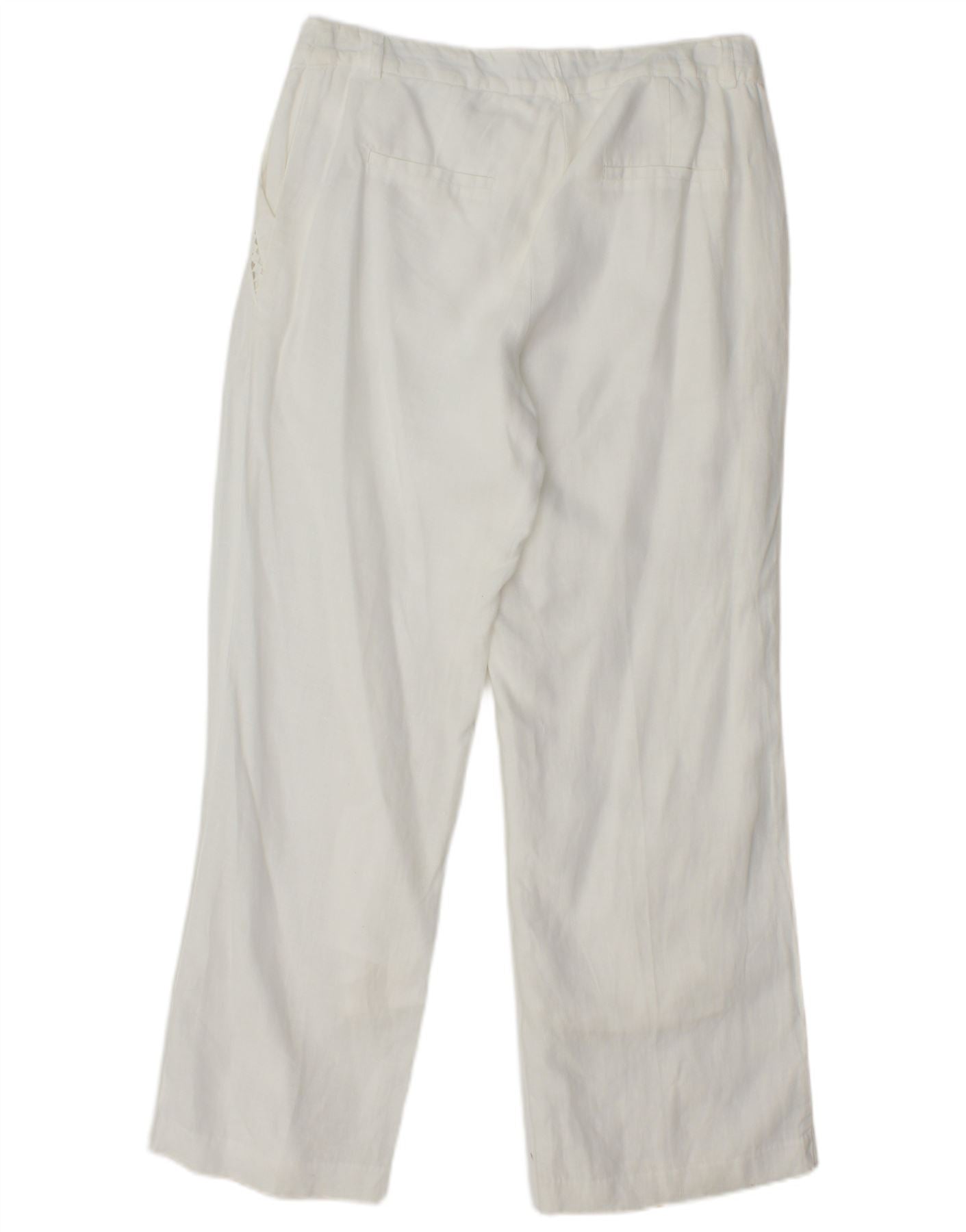 Proste spodnie damskie MONSOON UK 10 Small W27 L28 Białe lniane