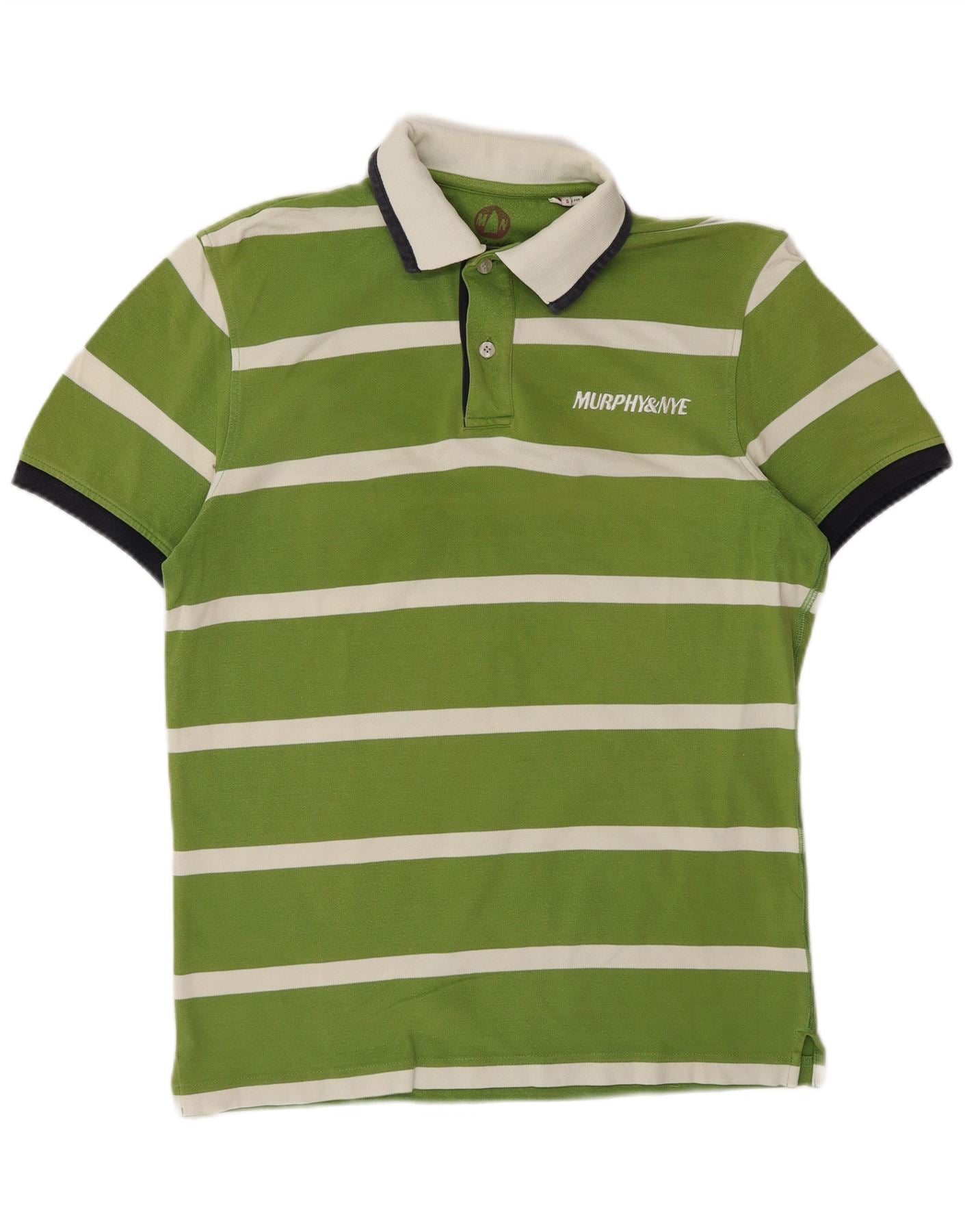 MURPHY & NYE Mens Regular Fit Polo Shirt Small Green Striped Cotton