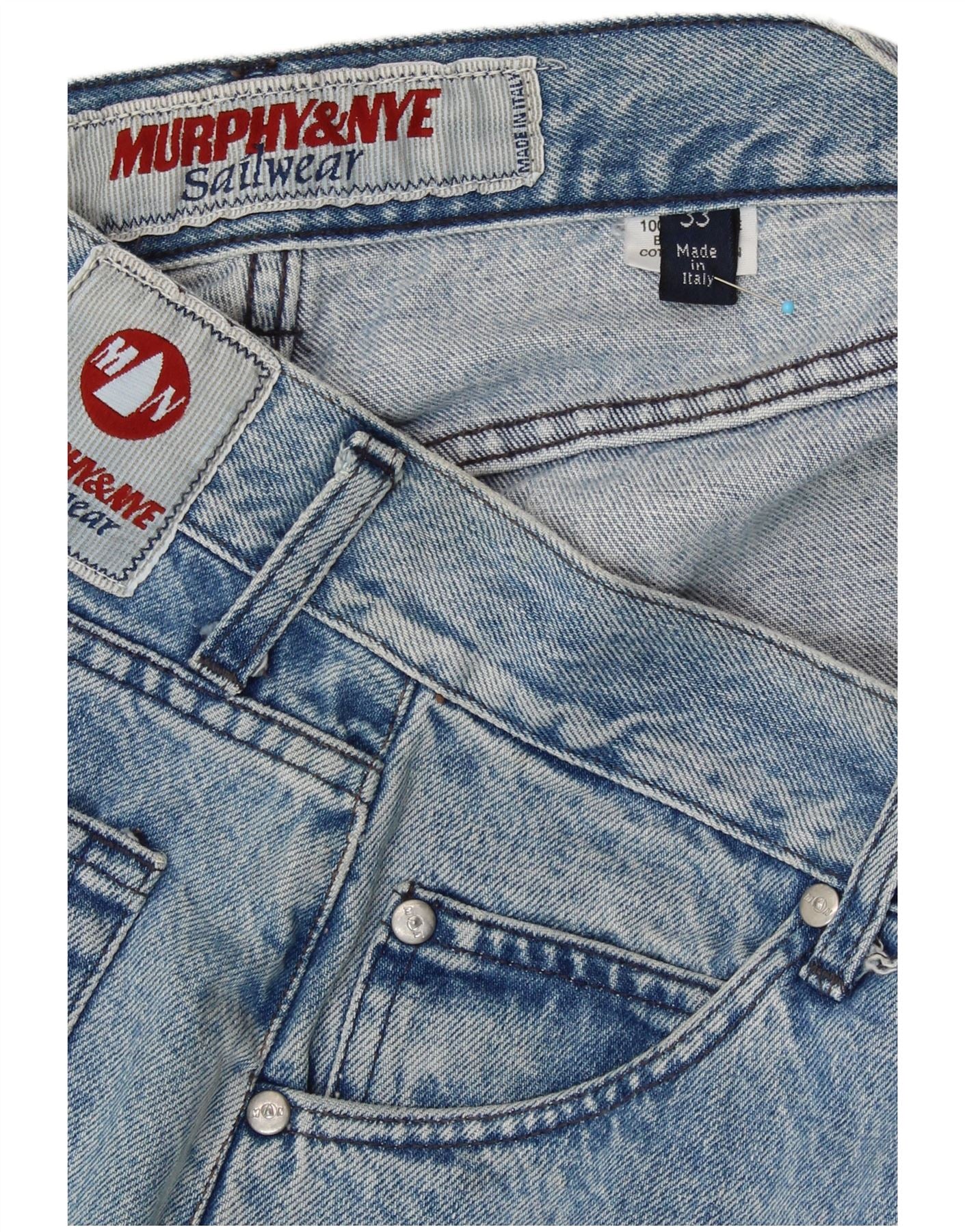 MURPHY & NYE Mens Sailwear Straight Jeans W33 L29 Blue Cotton