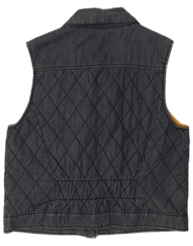 MUSTANG Womens Padded Denim Gilet UK 16 Large Navy Blue Argyle/Diamond