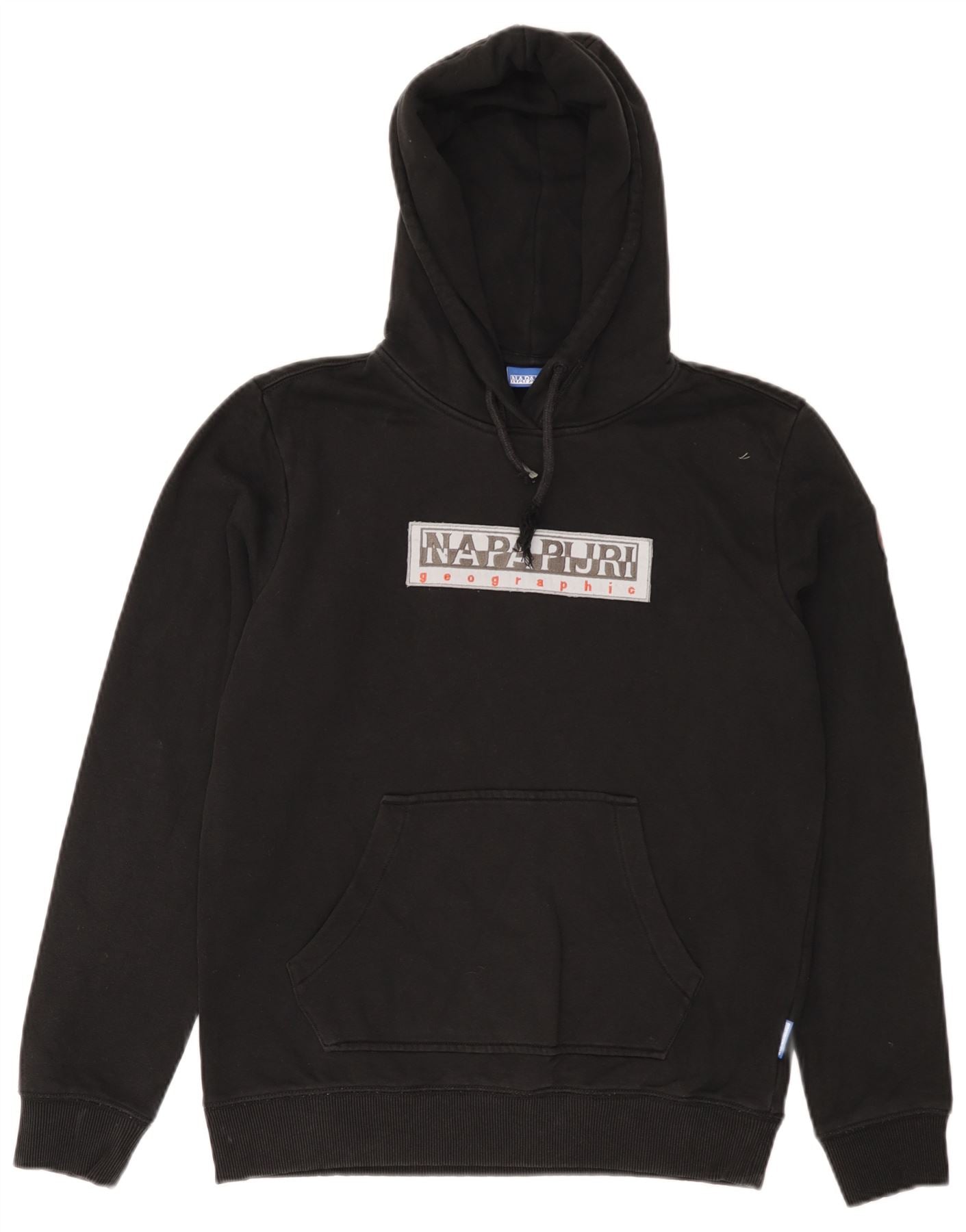 Męski sweter z kapturem i grafiką geograficzną NAPAPIJRI, mały, czarny, bawełniany