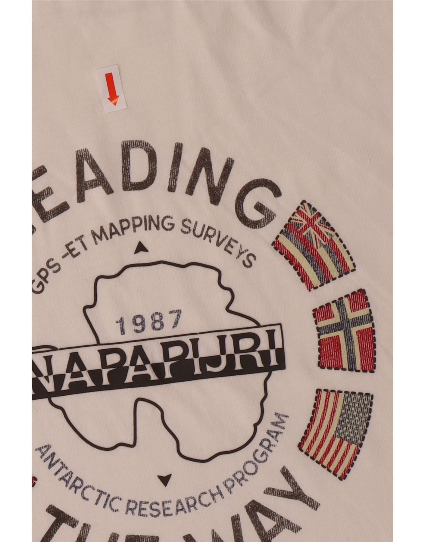 Męski T-shirt z grafiką Napapijri, mały, złamanej bieli, bawełniany
