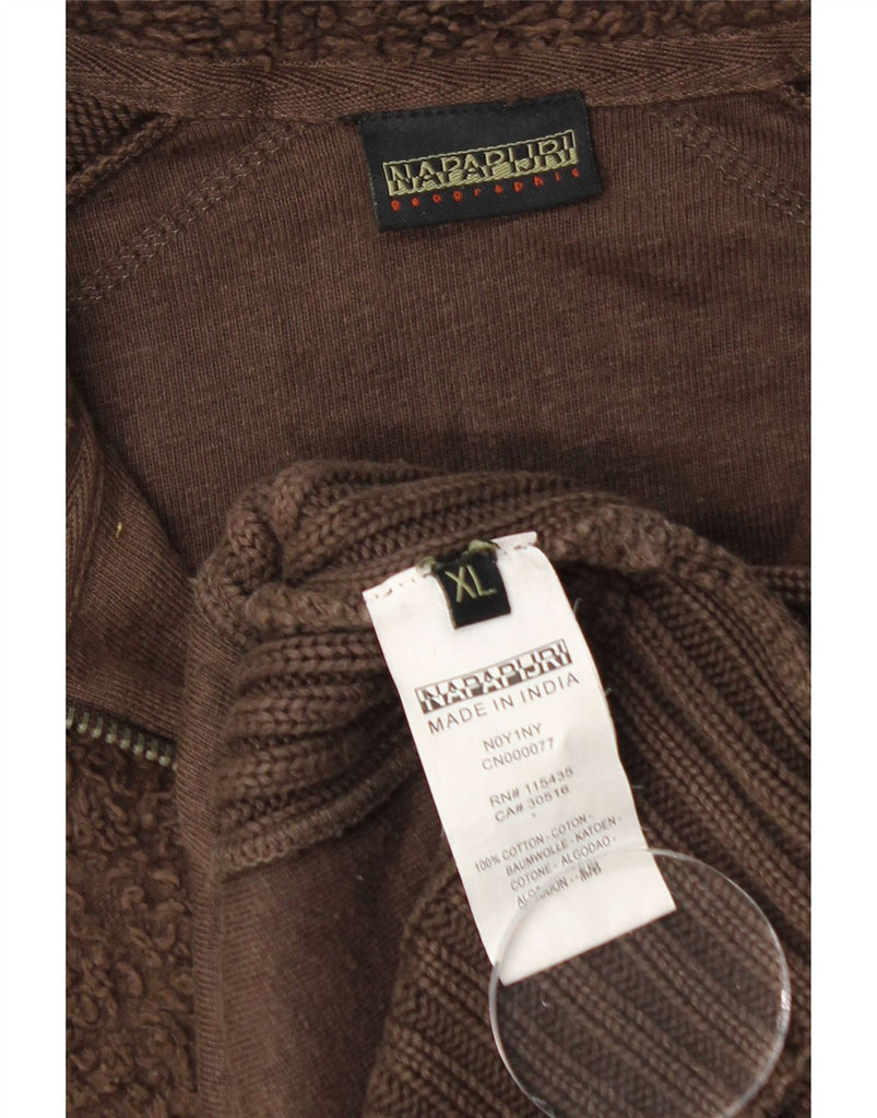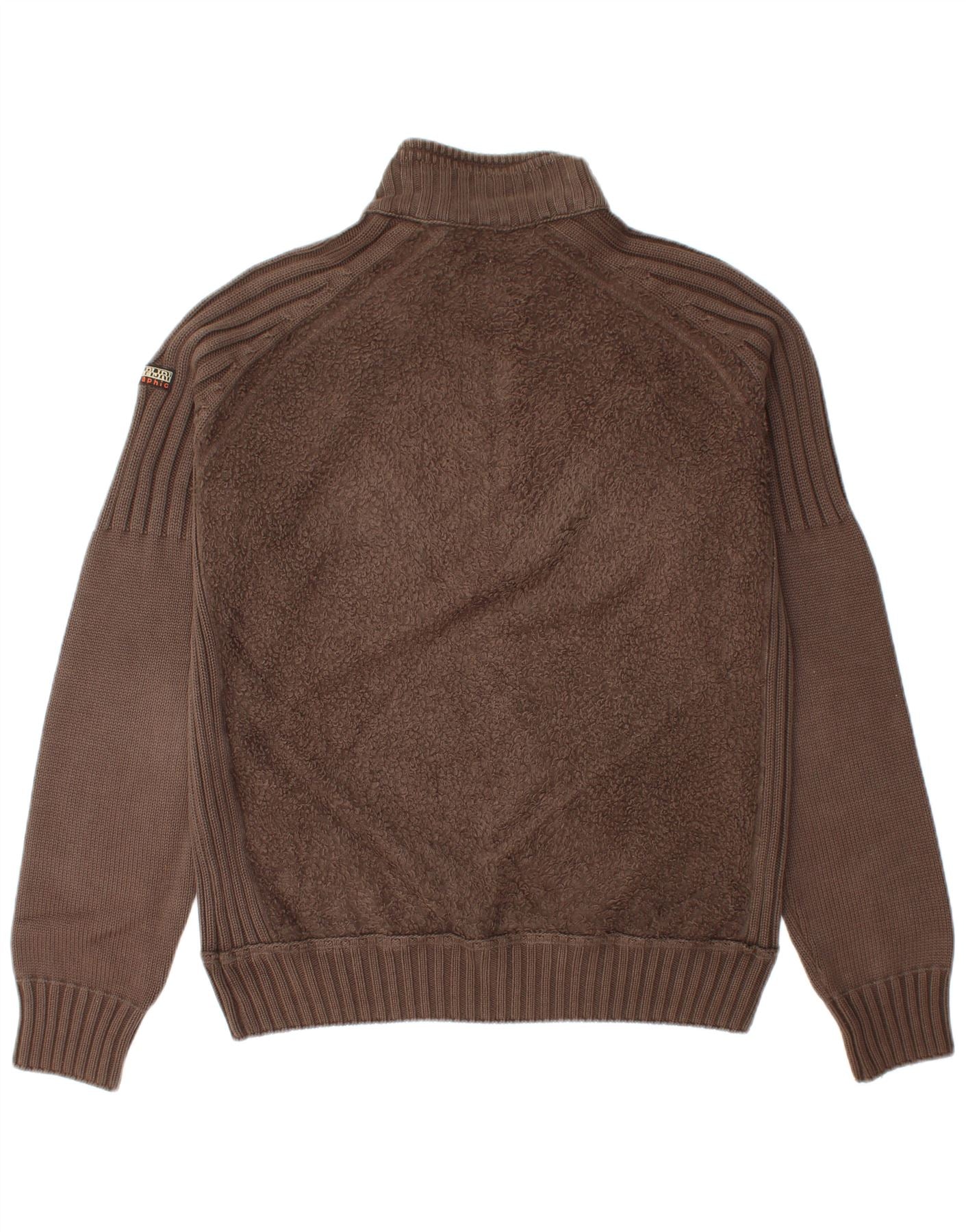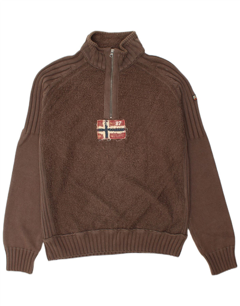 NAPAPIJRI Mens Graphic Zip Neck Jumper Sweater XL Brown Cotton