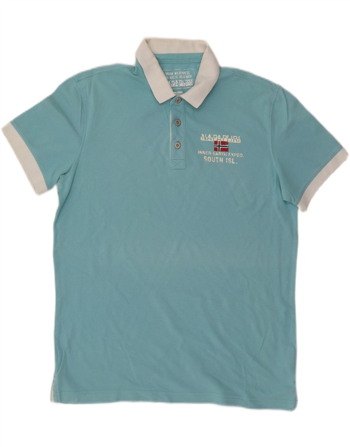 Męska koszulka polo NAPAPIJRI XL, niebieska, bawełniana w bloki kolorów