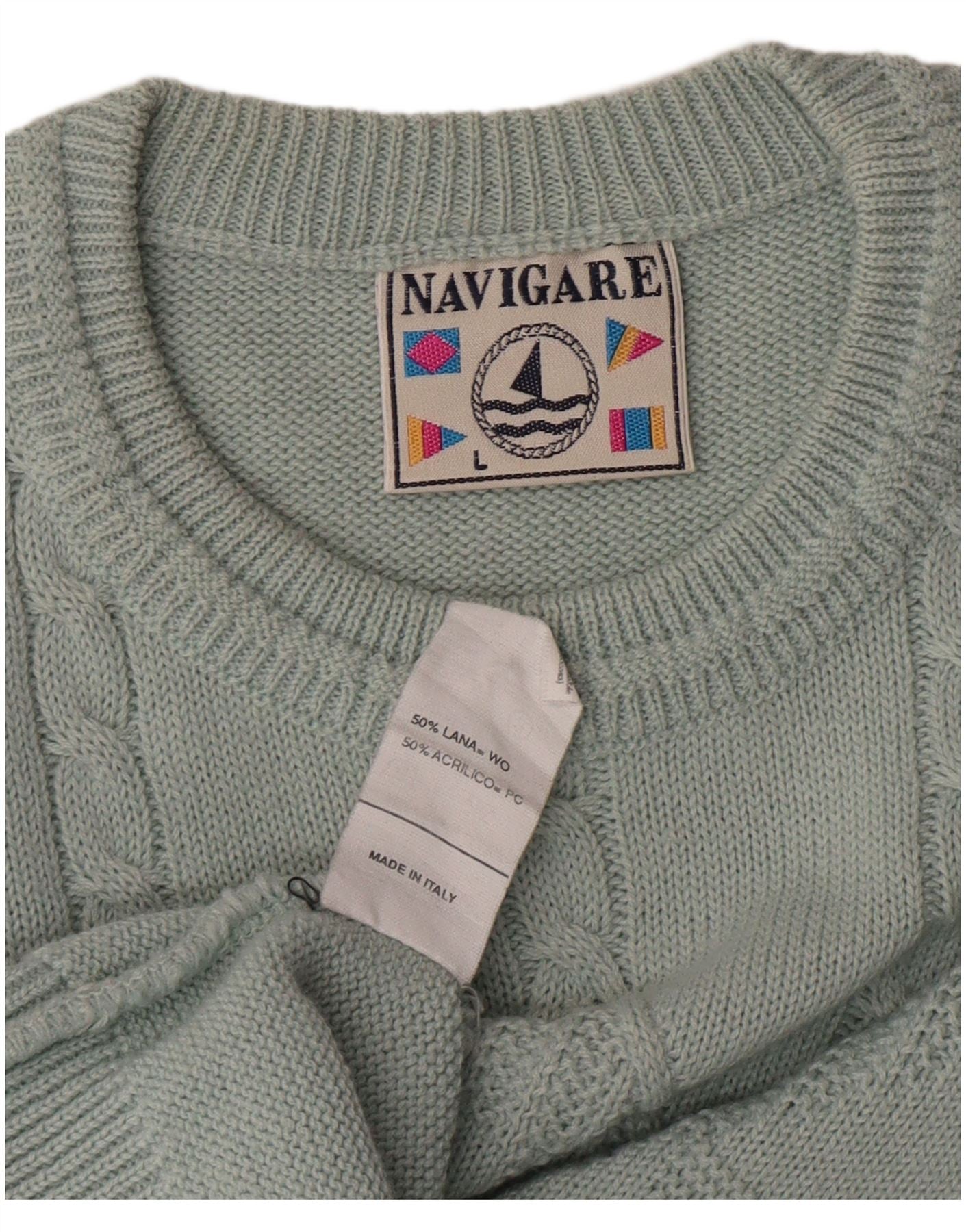 Męski sweter z okrągłym dekoltem NAVIGARE, duży, zielony, argyle/diamentowy klasyczny