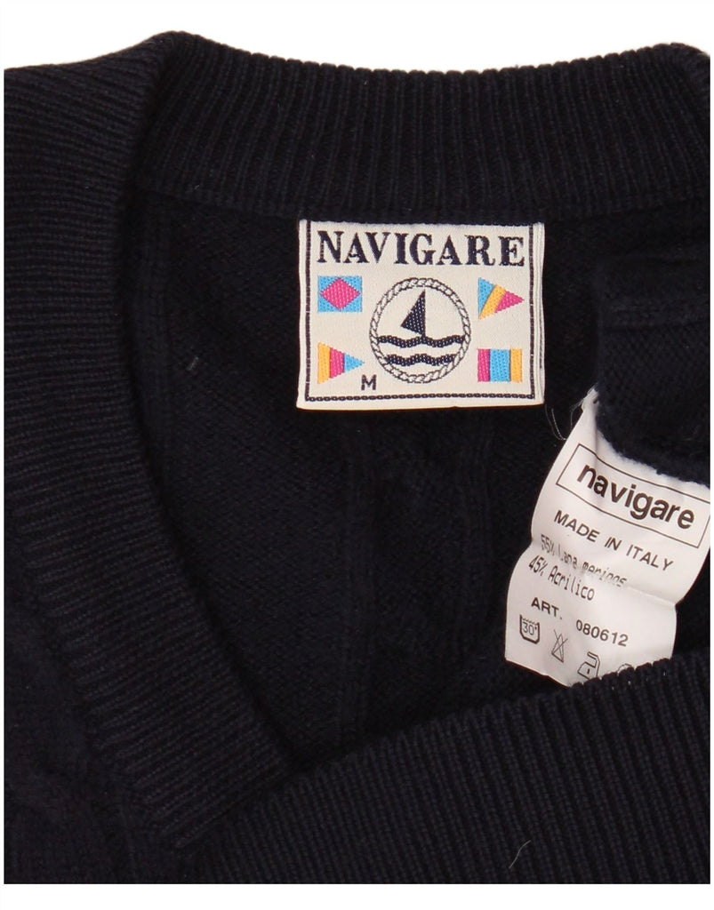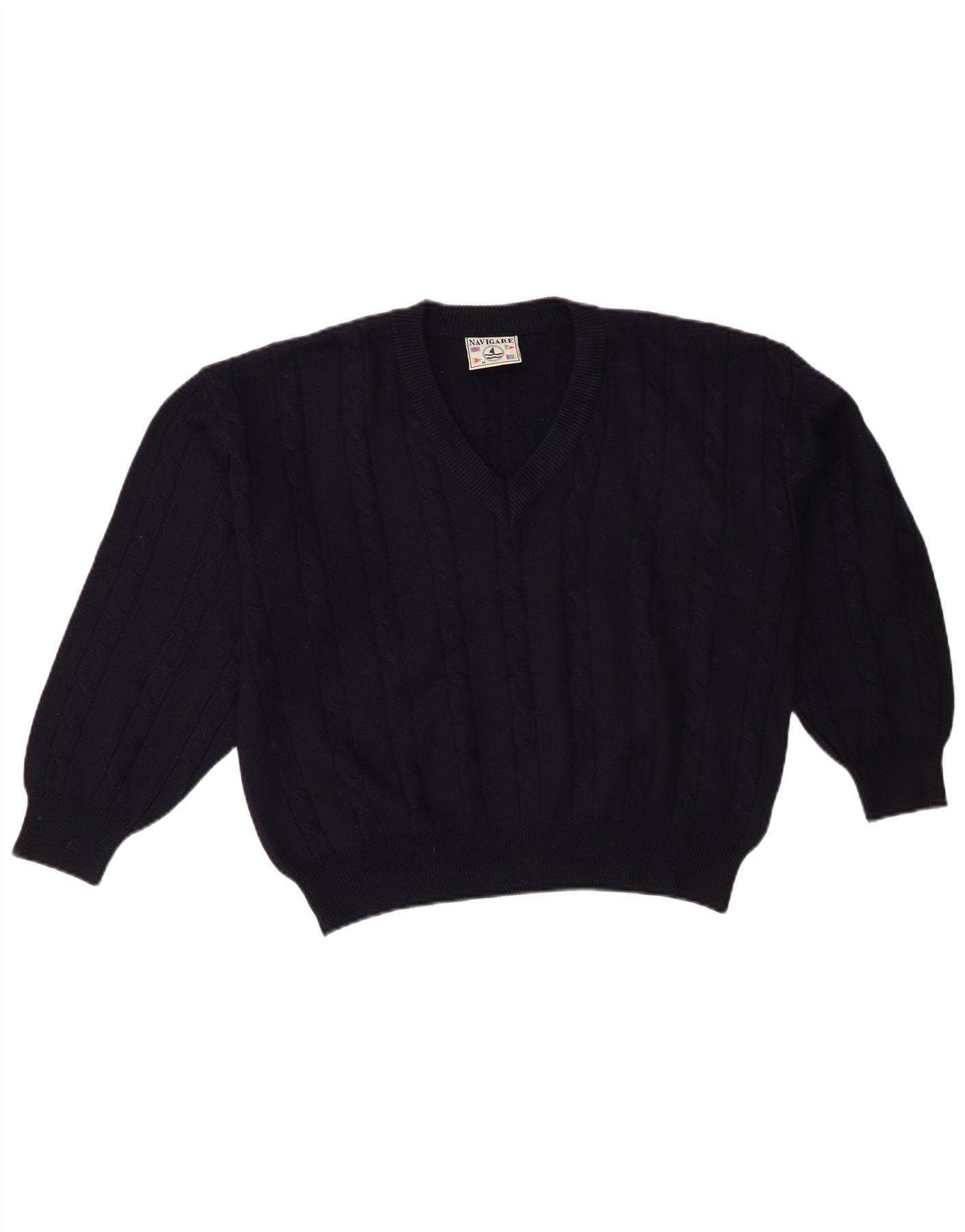 NAVIGARE Womens Oversized V-Neck Jumper Sweater UK 14 Medium Navy Blue