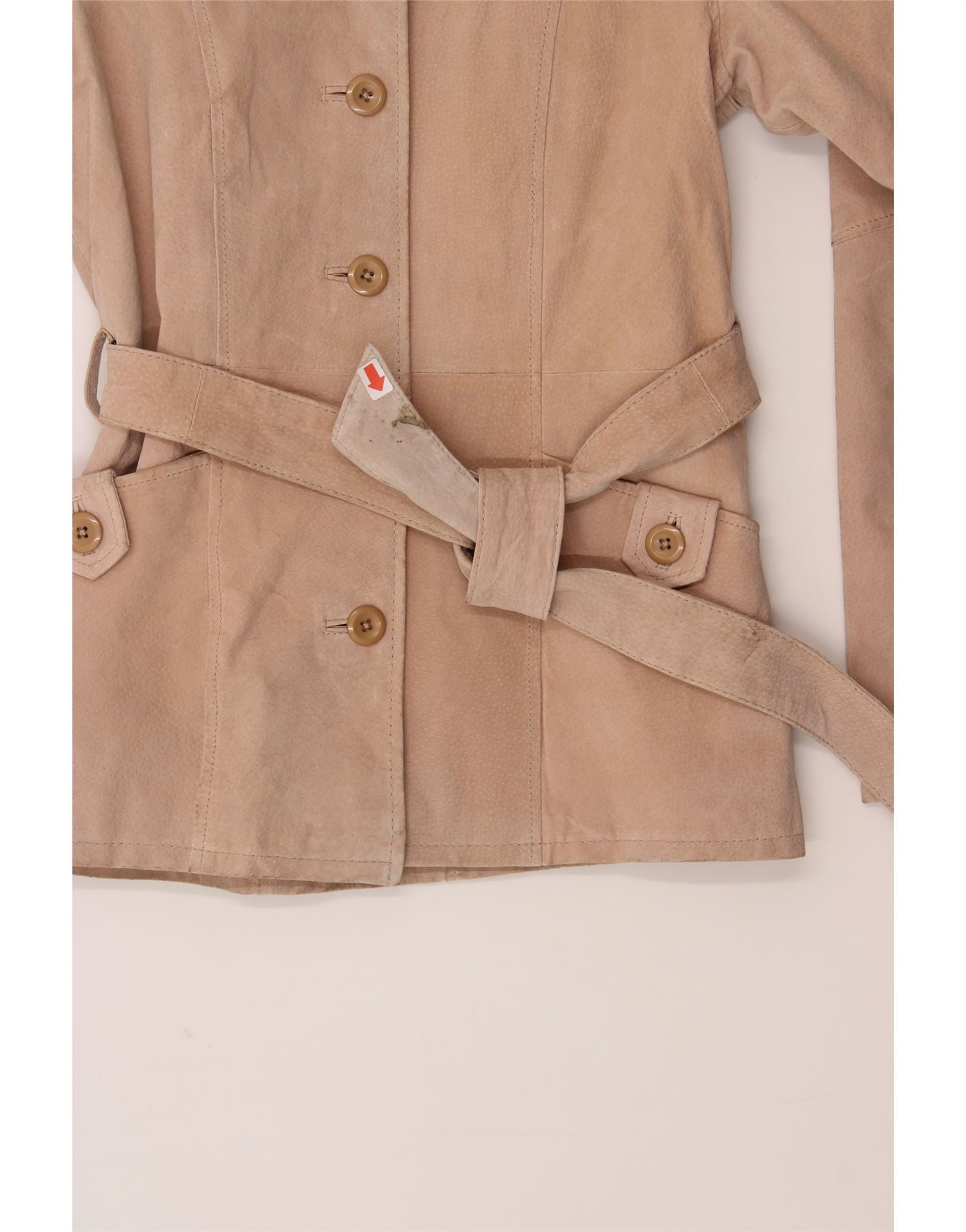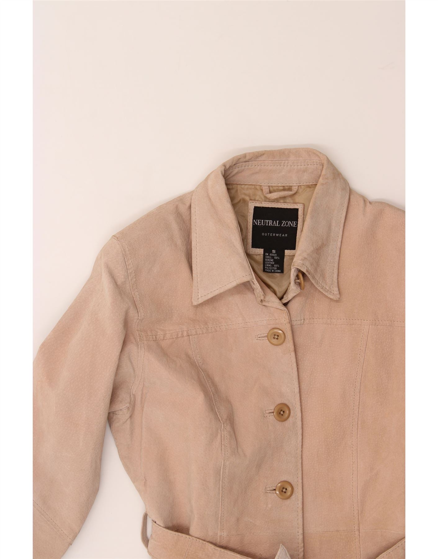 NEUTRAL ZONE Womens Leather Jacket UK 10 Small Beige Leather