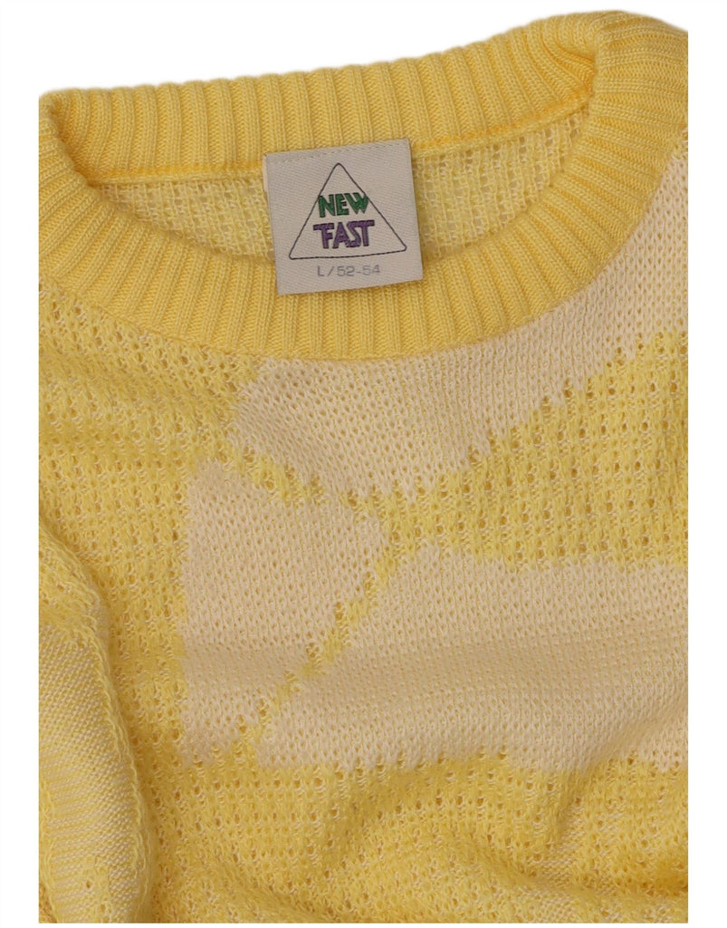 NOWY damski sweter typu FAST z dekoltem w łódkę UK 16, duży, żółty, geometryczny