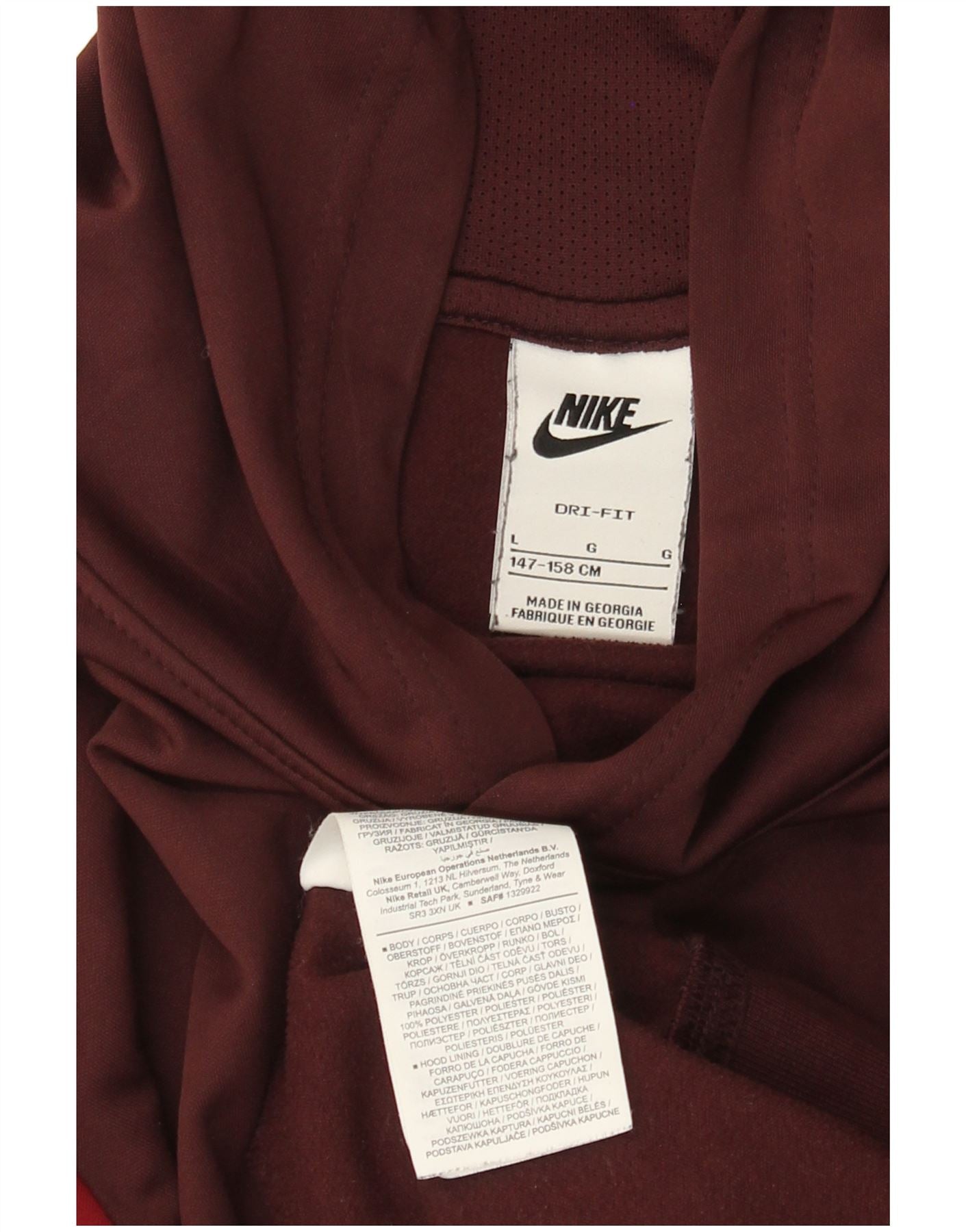 Chłopięcy sweter z kapturem NIKE z grafiką, 12-13 lat, duży, bordowy, z blokami kolorów
